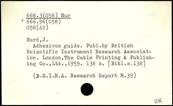 Adhesives guide. Puhl.by British Scientific Instrument Research Association. London,The