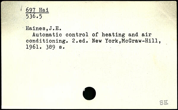 ggSF j ■ ' ’ '^31 1 é31 Jai 536.5 Haine3,J.E. Automatic control of heating and air conditioning.