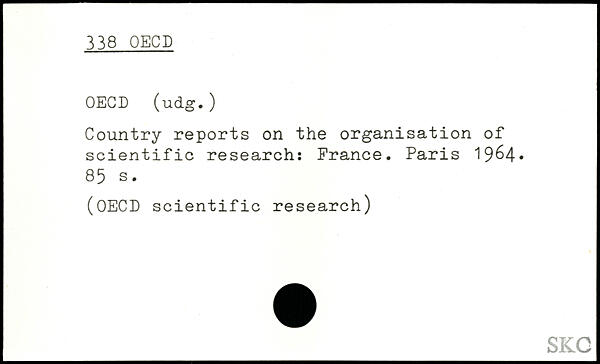 Country reports on the organisation of scientific research: France. Paris 19&4.