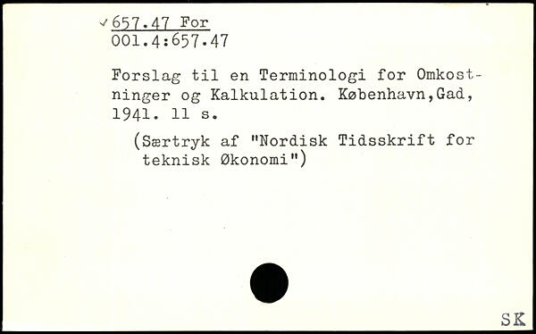 Forslag til en Terminologi for Omkostninger og Kalkulation.