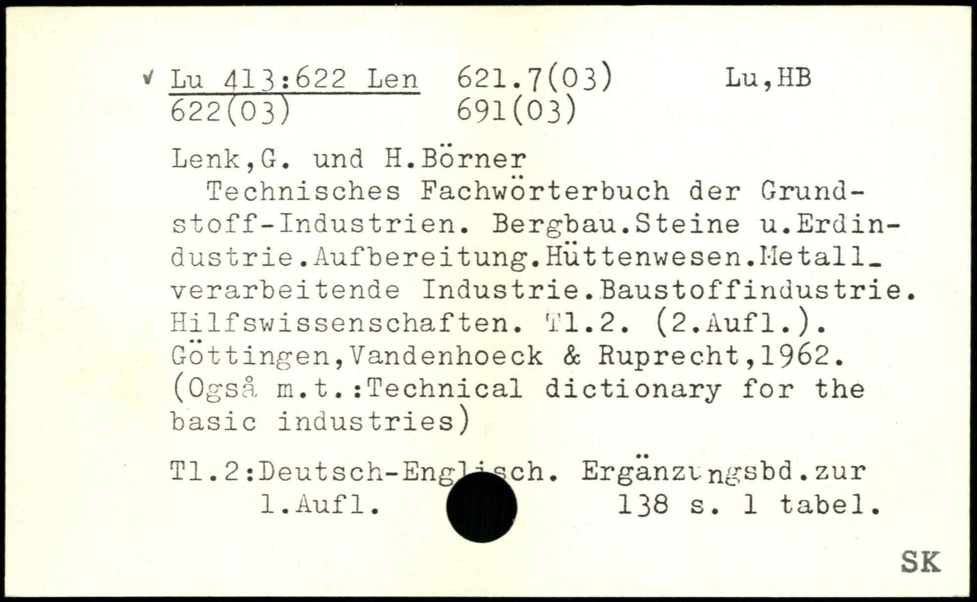 UDK: 413:622 Len, 621.7(03), 622(03), 691(03)