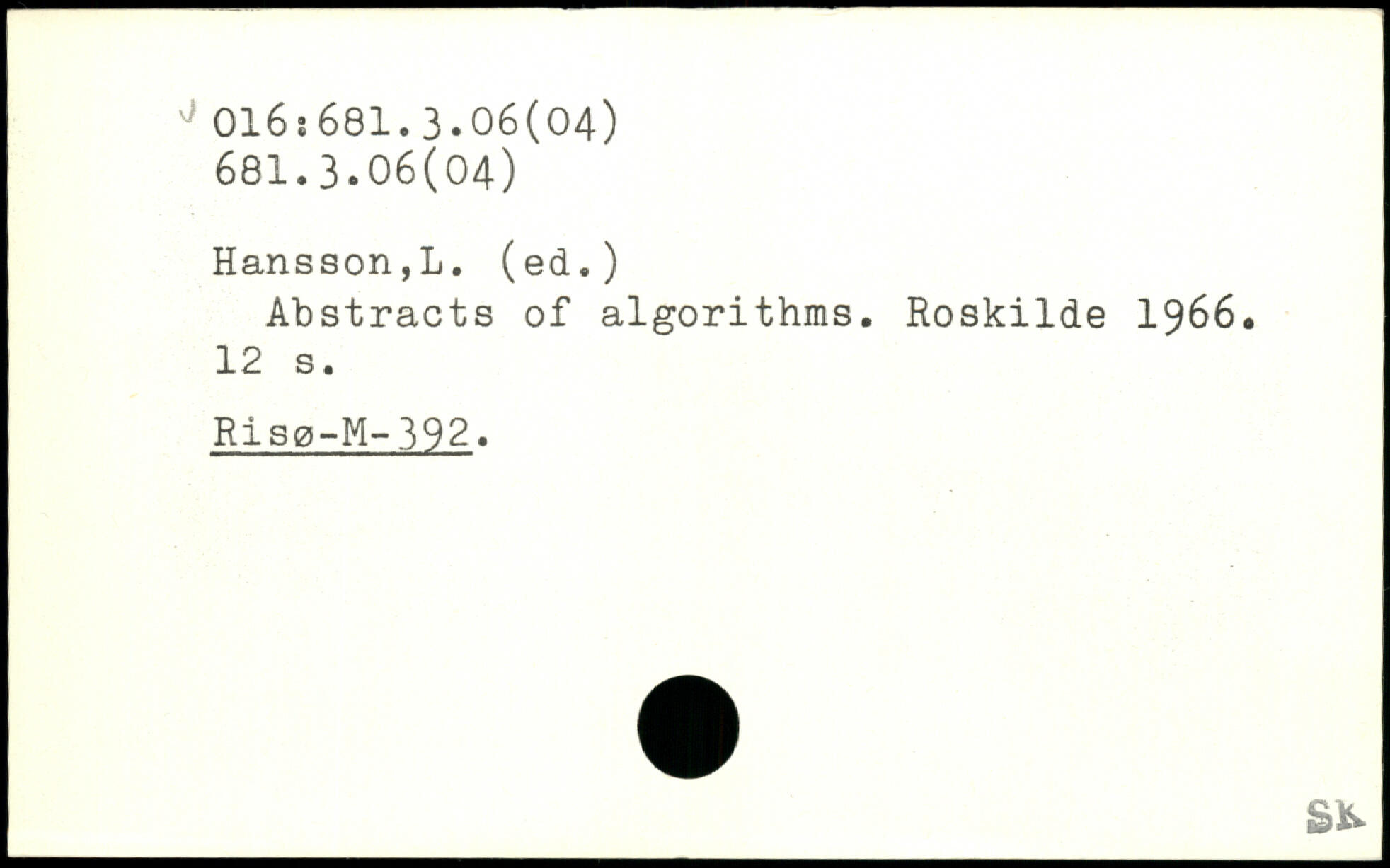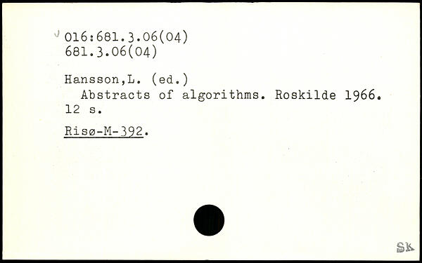 Abstracts of algorithms. Roskilde 1966.