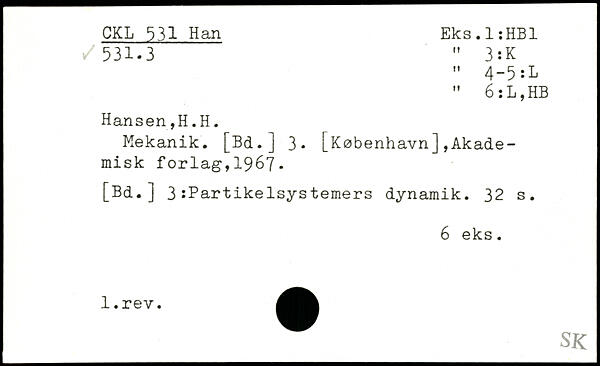 Mekanik. [Bd.] 3. [København],Akademisk forlag,1967. [Bd.] 3:Partikelsysterners dynamik.