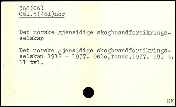 Det norske gjensidige skogbrandforsikrings-seiskap Det norske g gensidige skogbrandforsikrings-selskap 1912 - 1937.