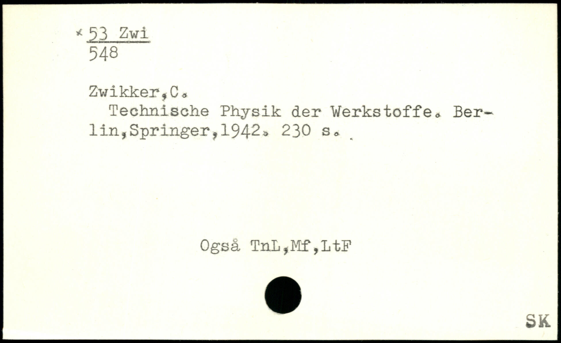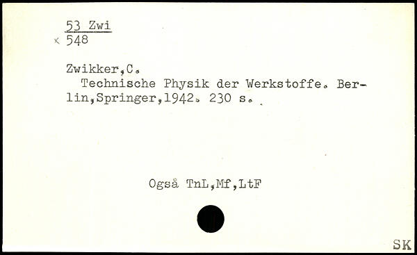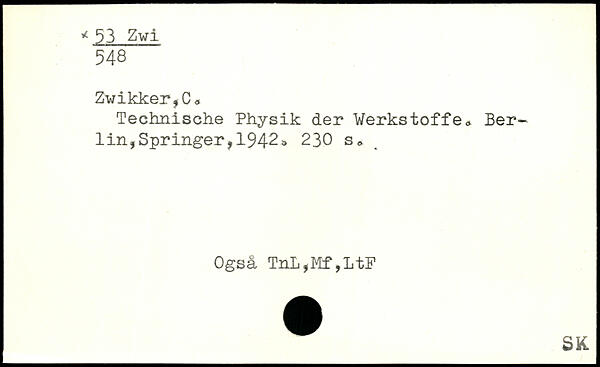 Technische Physik der Werkstoffe, Berlin, Springer , 1942, 230 s, Ogsä TnL,Mf,LtF