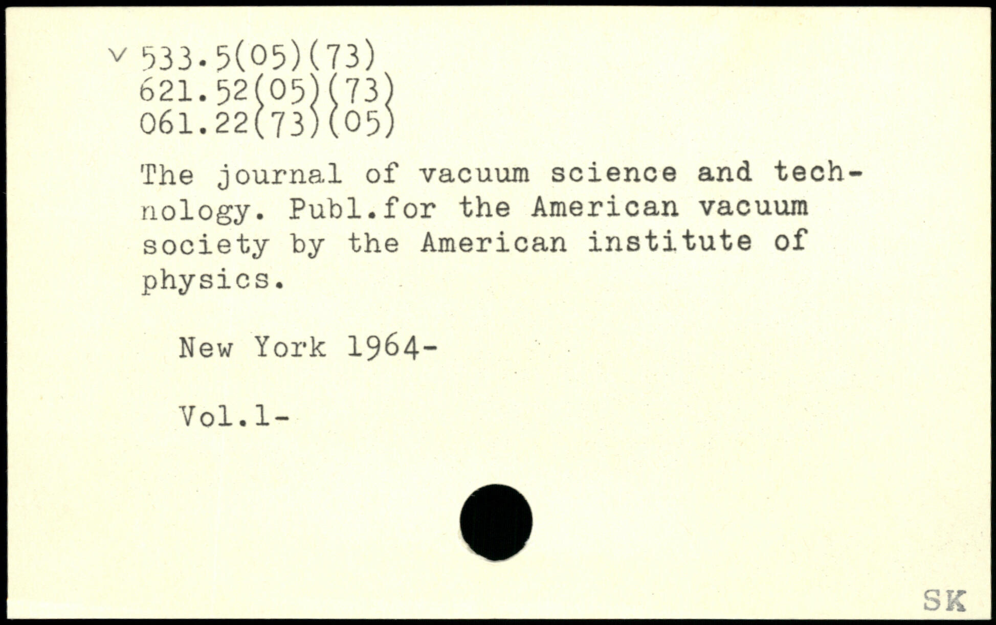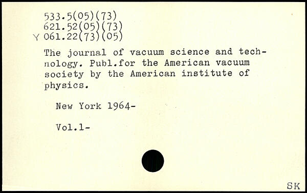 The journal of vacuum science and technology. Publ.for the American vacuum society by the American institute of physics.