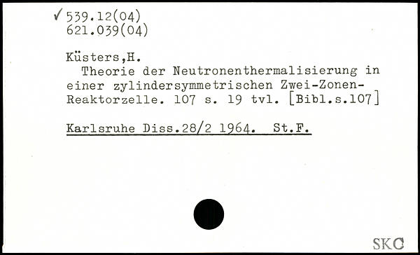 Theorie der Neutronenthermalisierung in einer zylIndersymmetri sehen Zwei-Zonen-Reaktorzelle.