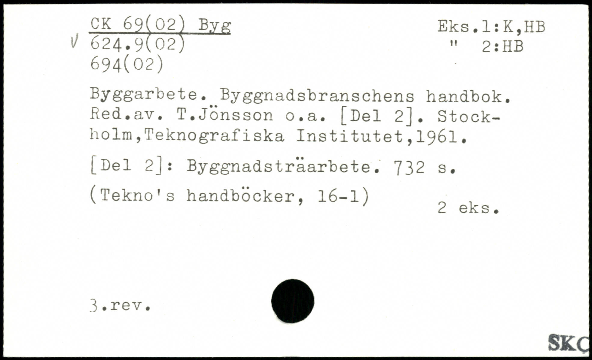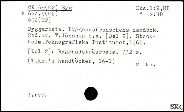 Byggarbete.^Byggnadsbranschens handbok. Red.av. T.Jönsson o.a. [Del 2].