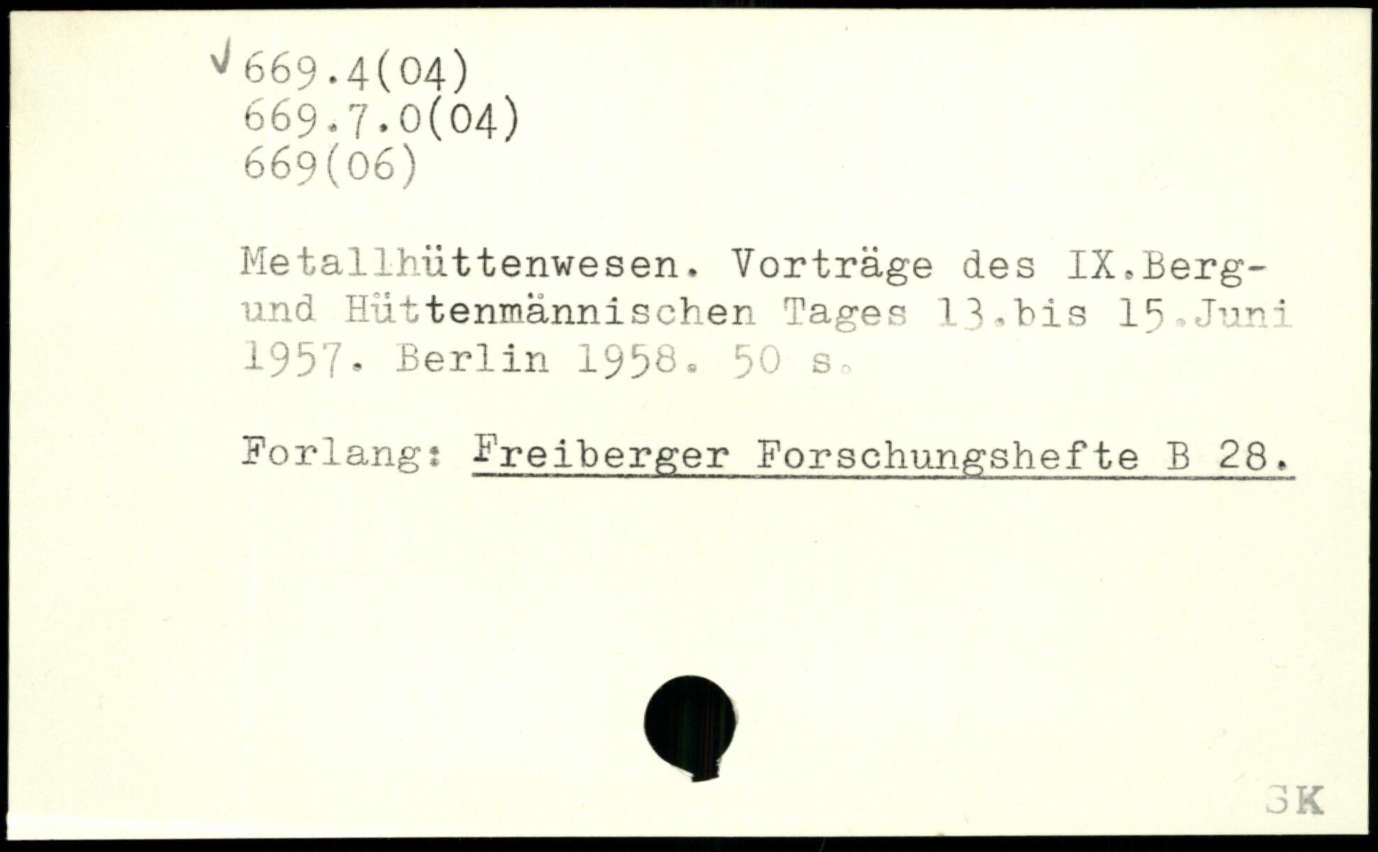 Metallhüttenwesen. Vorträge des IX.Berg-und Hüttenmännischen Tages 13,bis 15,Juni 1957.