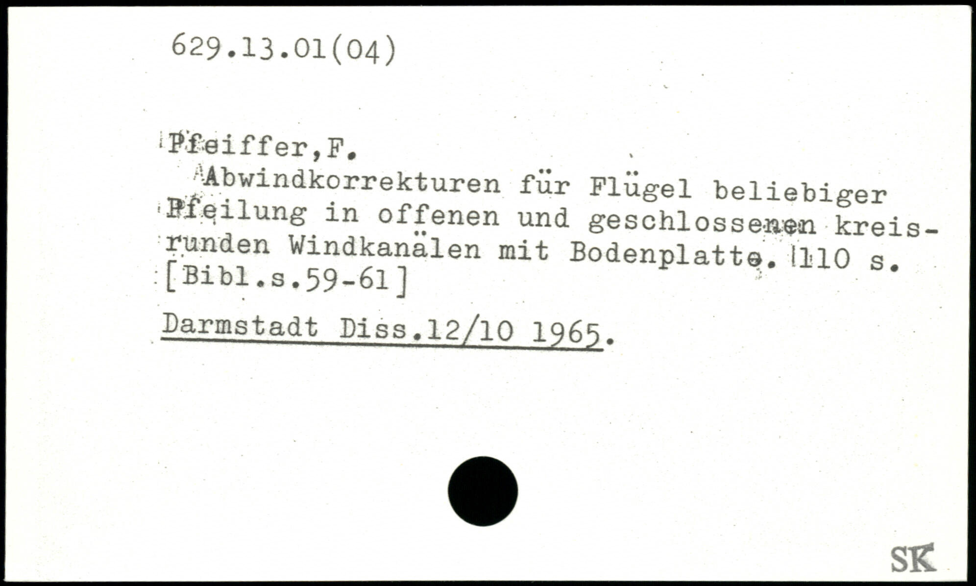 ‘P&eiffer,F. jAbwindkorrekturen für Flügel beliebiger Pfeilung in offenen und geschlossenen kreisrunden Vindkanalen mit Bodenplatte.