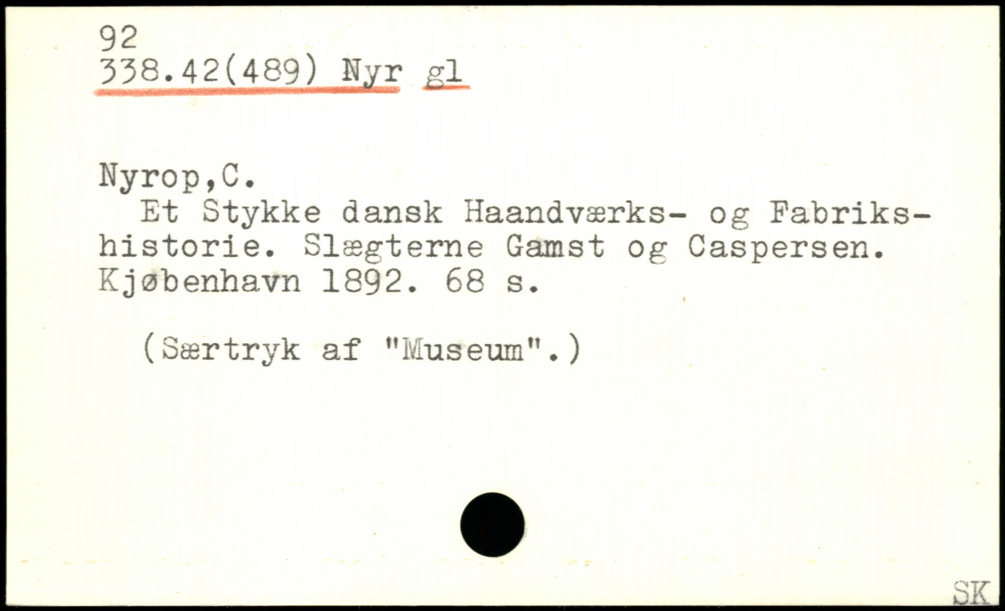 Et Stykke dansk Haandværks- og Fabriks-historie. Slægterne Gamst og Caspersen. Kjøbenhavn 1892.