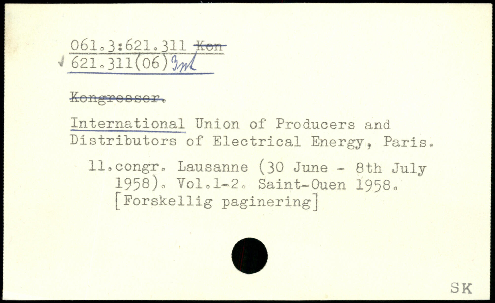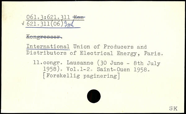 International Union of Producers and Distributors of Electrical Energy, Paris, ll.congr. Lausanne (30 June - 8th July 1958)o Volol-2o Saint-Ouen 1958