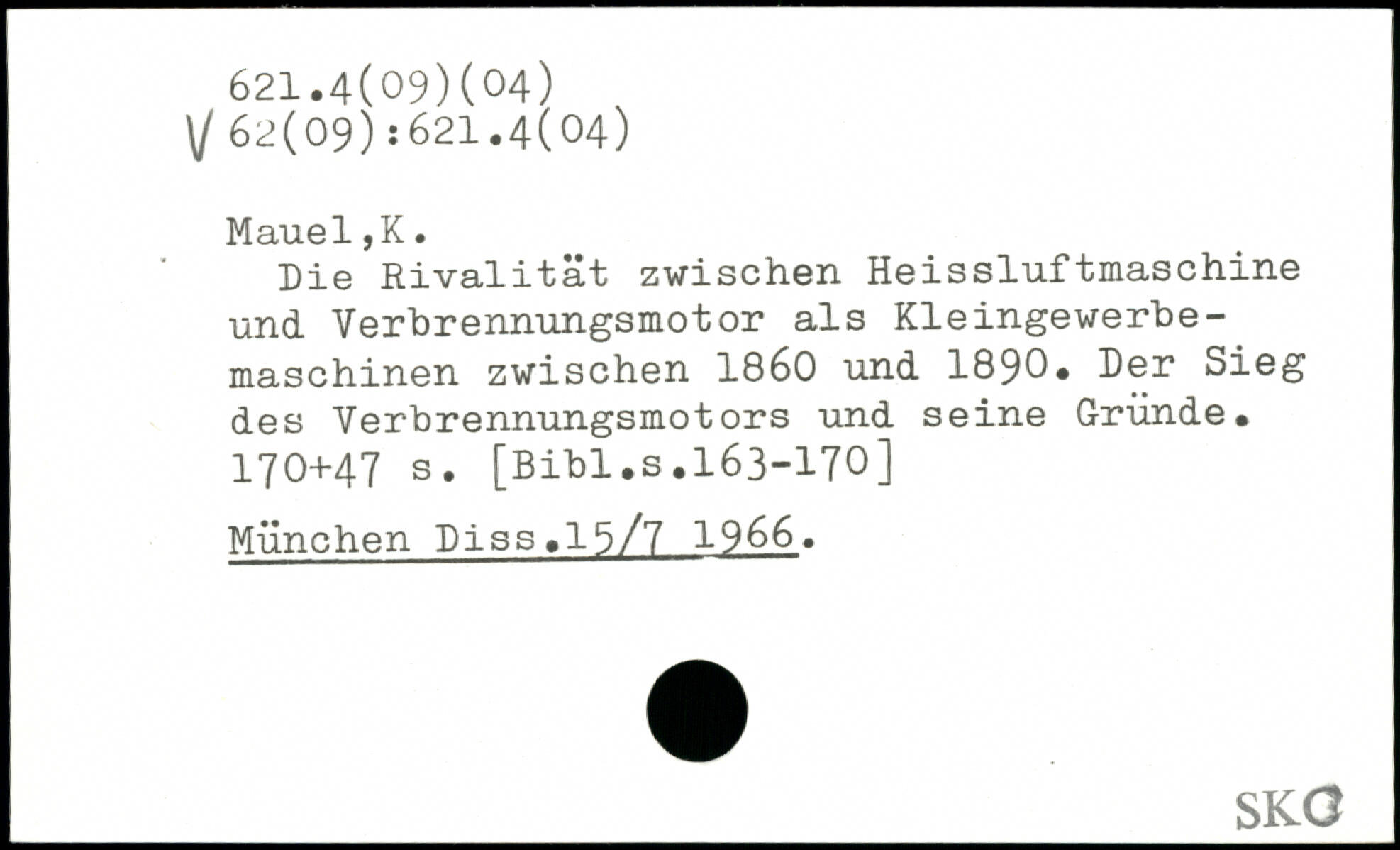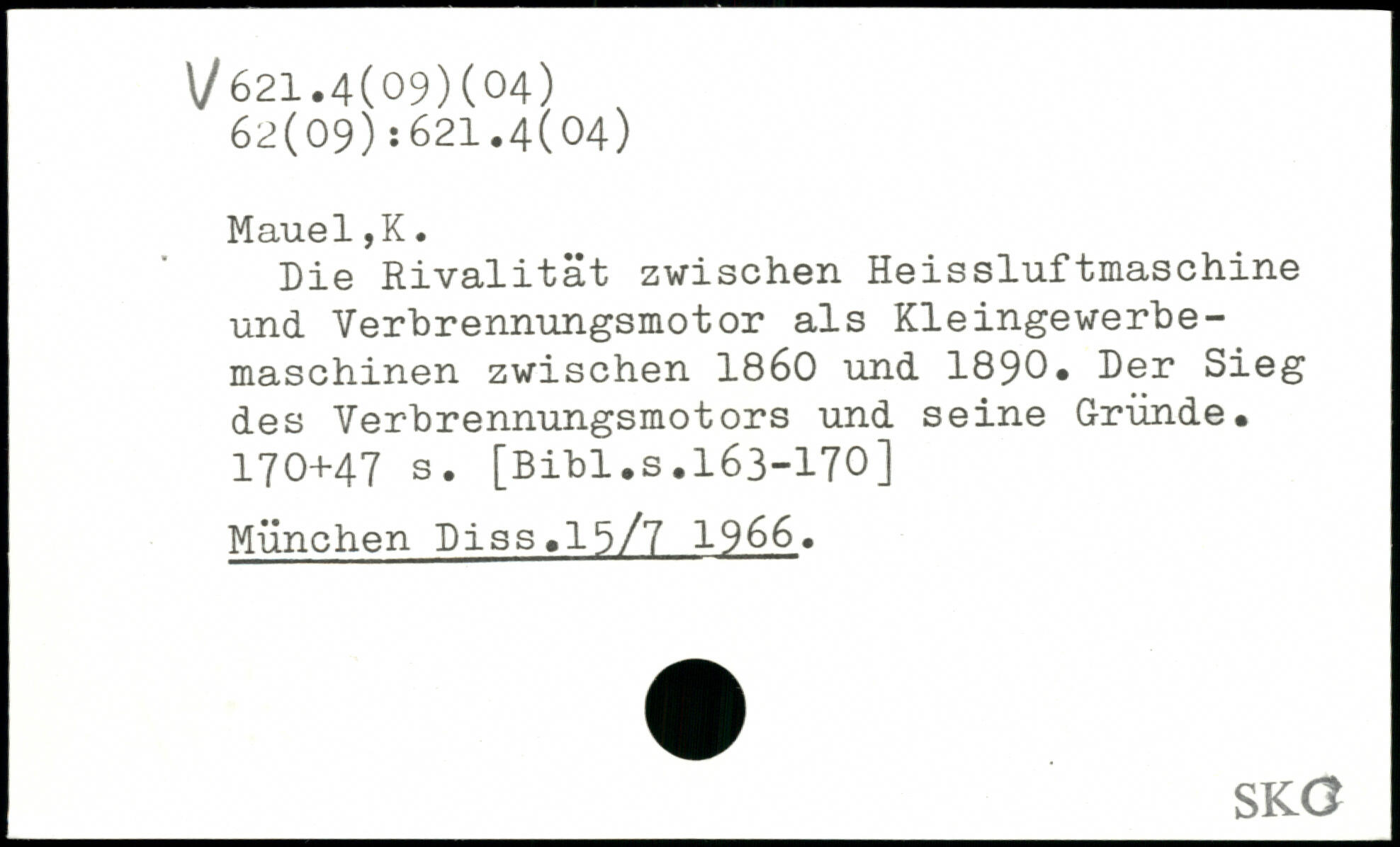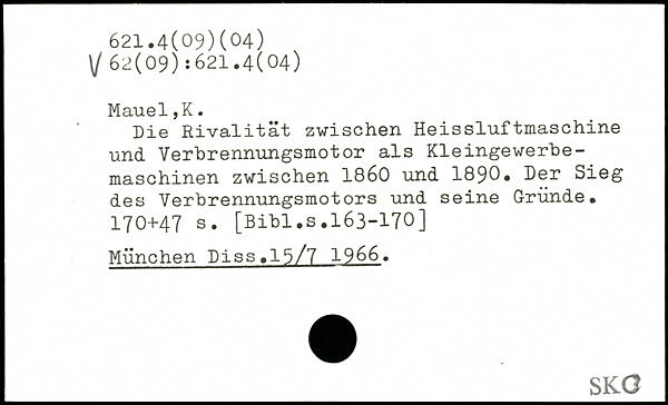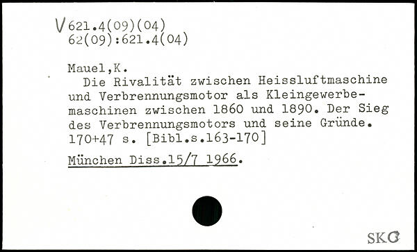 Die Rivalität zwischen Heissluftmaschine und Verbrennungsmotor als Kleingewerbemaschinen zwischen 1860 und 1890. Der Sieg des Verbrennungsmotors und seine Gründe.
