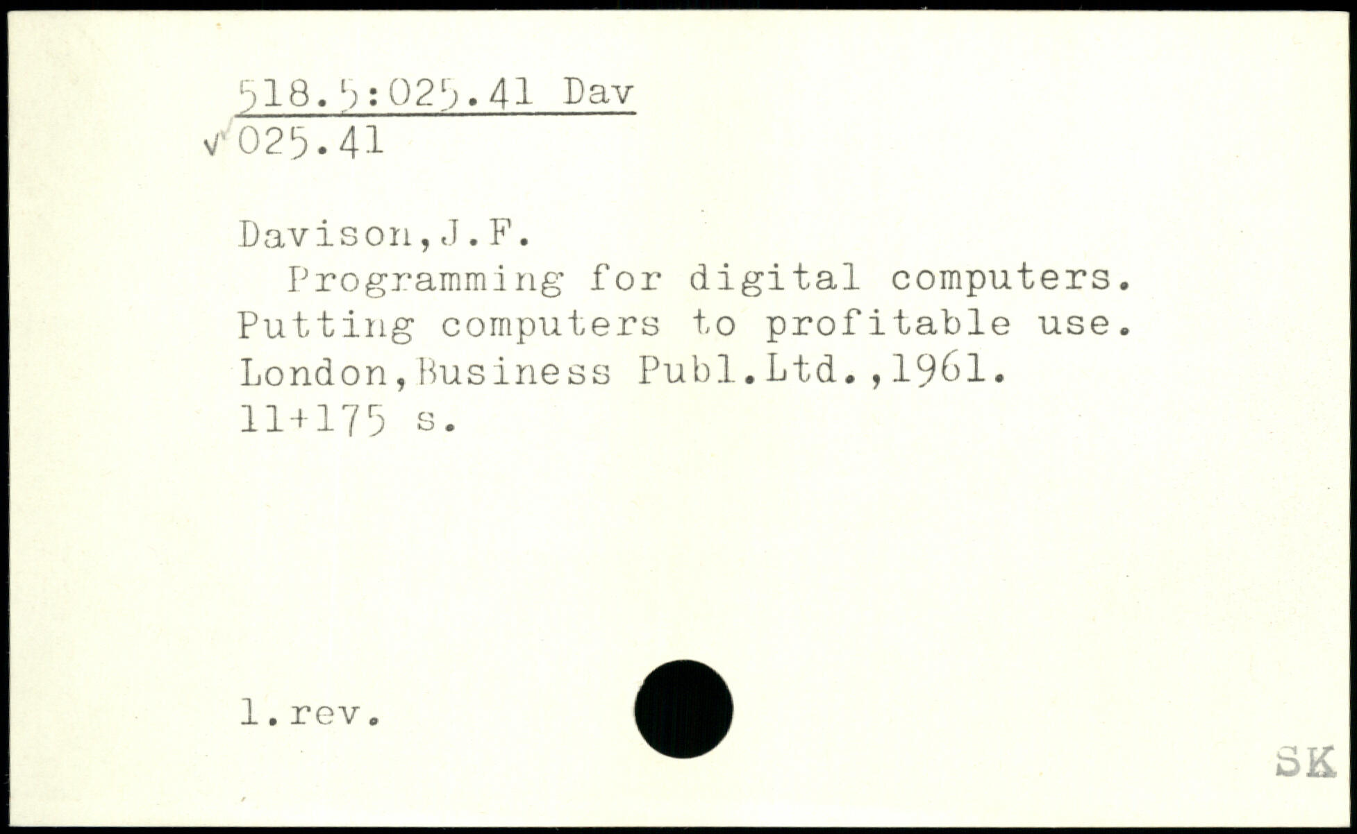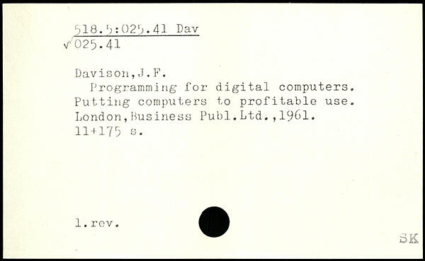 Programming for digital computers. Putting computers to profitable use. London,Business Publ.Ltd.,19&1.