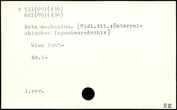 Acta mechanic,. ['fidl. tit. sösterrei-chisches Ingenieur-Archiv] Wien lcjb L)~ Bd. 1-