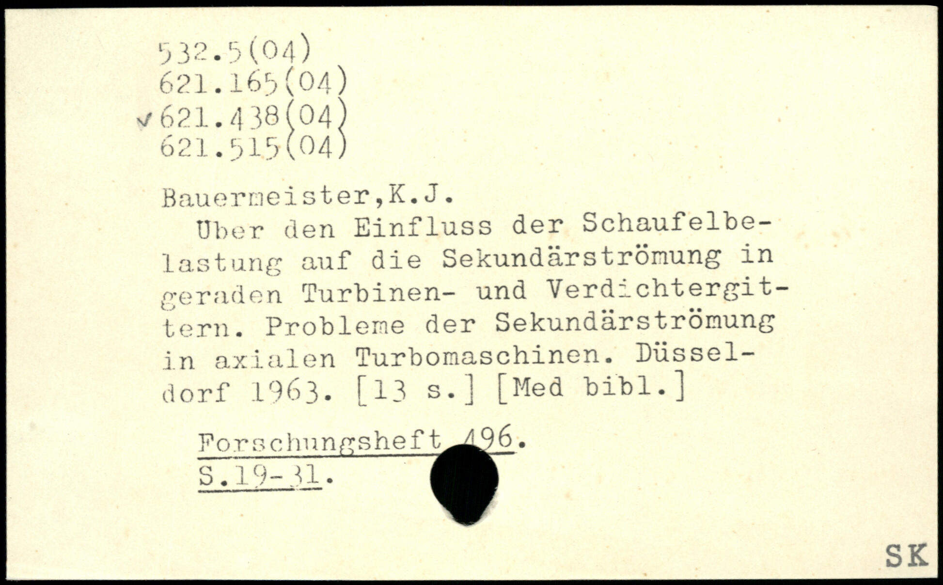 über den Einfluss der Schaufelbelastung auf die SekundärStrömung in geraden Turbinen- und Verdichtergittern. Probleme der Sekundärströmung in axialen Turbomaschinen. Düsseldorf 1963. [