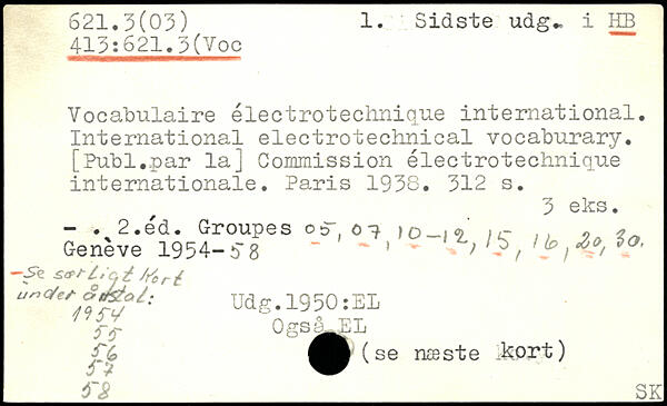 Vocabulaire elect rote clinique international. International electrotechnical vocaburary. [publ.par la] Commission électrotechnique internationale.