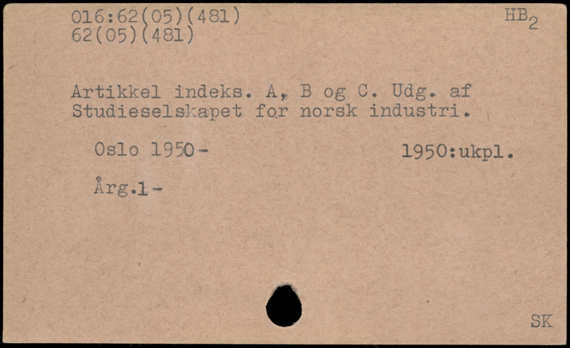 Artikkel indeks. Ar B og C. Udg. af Studieselskapet fo.r norsk industri. Oslo 1950- 1950: ukpl. Arg.l-