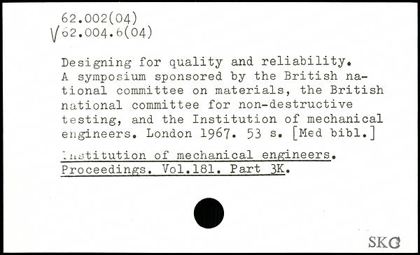 Designing for quality and reliability, A symposium sponsored by the British national committee on materials, the British national committee for non-destructive testing, and the Institution of mechanical engineers