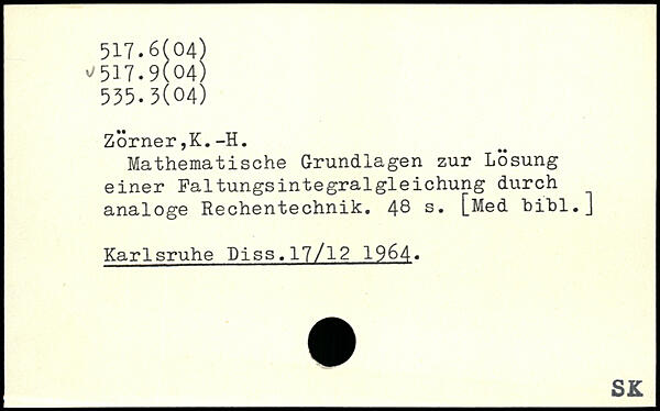 Mathematische Grundlagen zur Lösung einer Faltungsintegralgleichung durch analoge Rechentechnik.