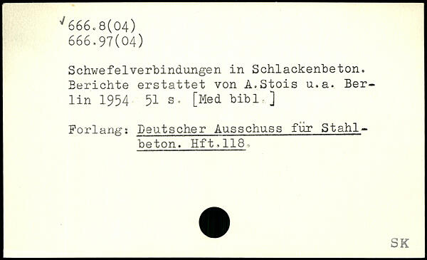 SchwefelVerbindungen in Schlackenbeton. Berichte erstattet von A.Stois u.a.