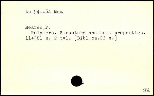 Polymers. Structure and bulk properties.
