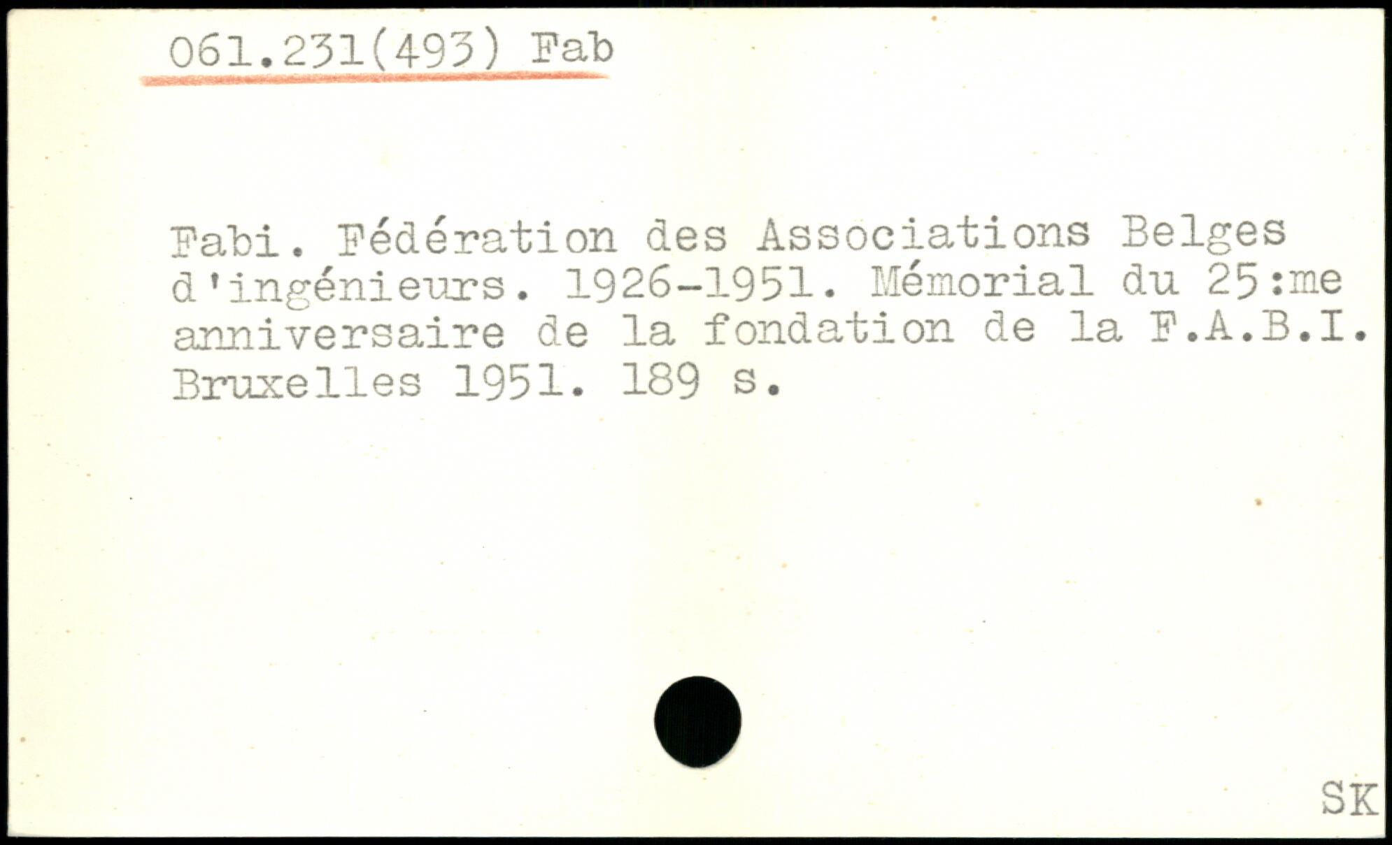 Fabi. Fédération des Associations Belges d 1 ingénieurs. 1926—1951, Mémorial du 25î^ie anniversaire de la fondation de la F.A.3.1.