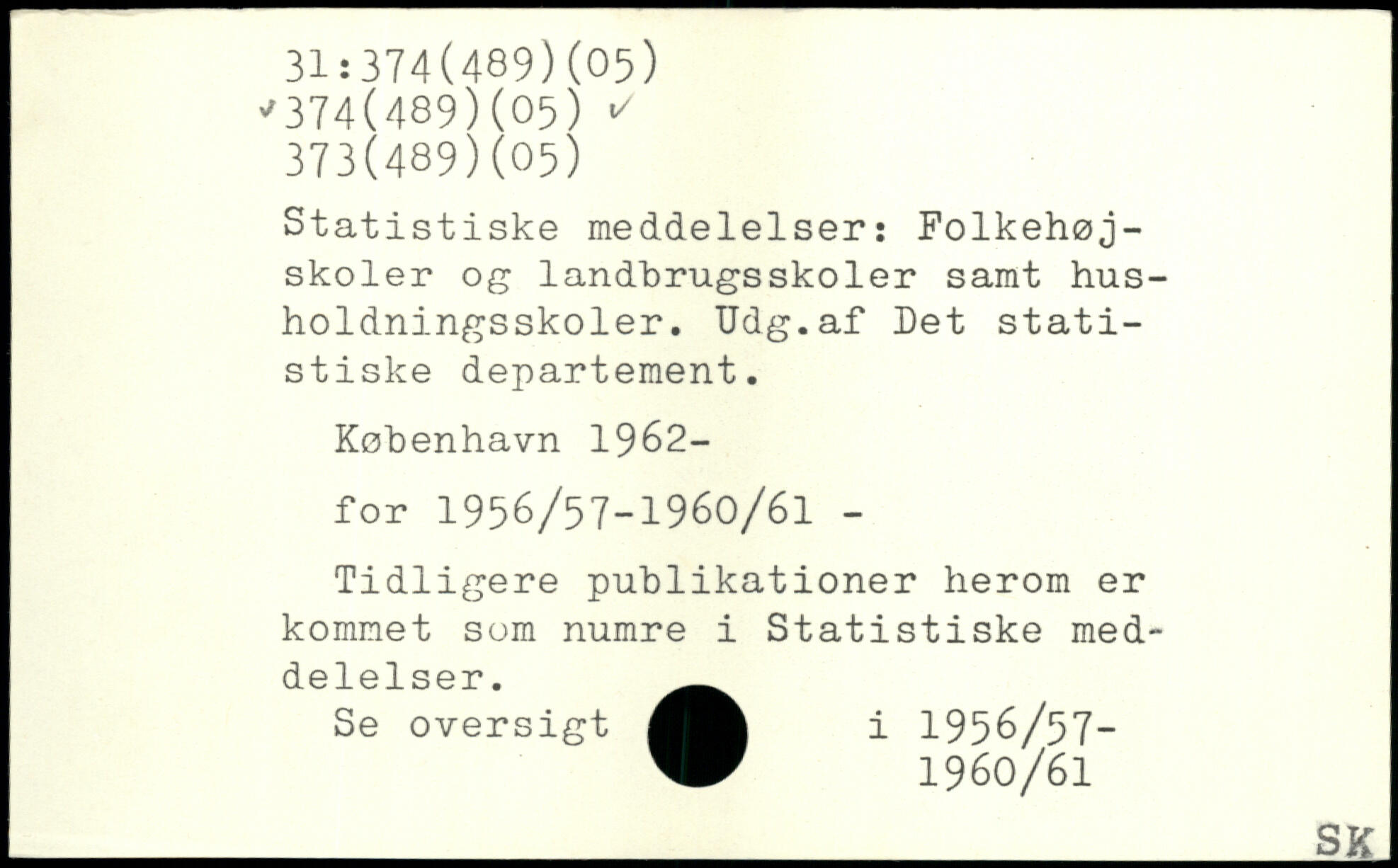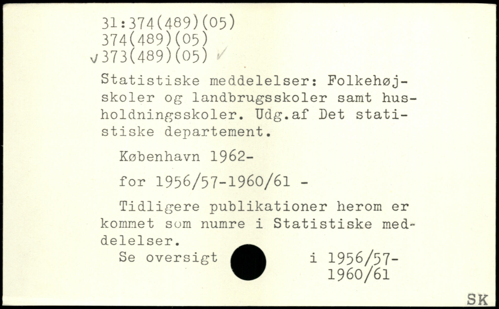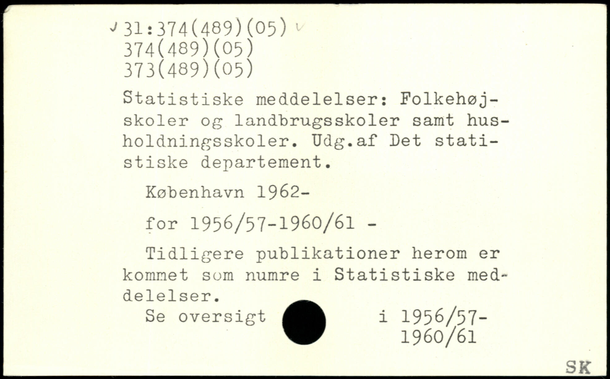 Statistiske meddelelser: Folkehøjskoler og landbrugsskoler samt husholdningsskoler. Udg.af Det statistiske departement.