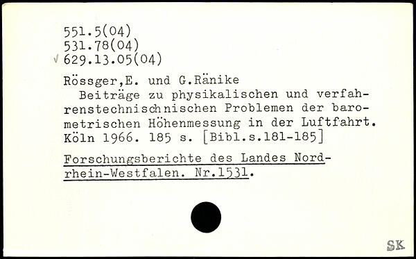 Beiträge zu physikalischen und verfahrenstechnisch nischen Problemen der barometrischen Höhenmessung in der Luftfahrt.