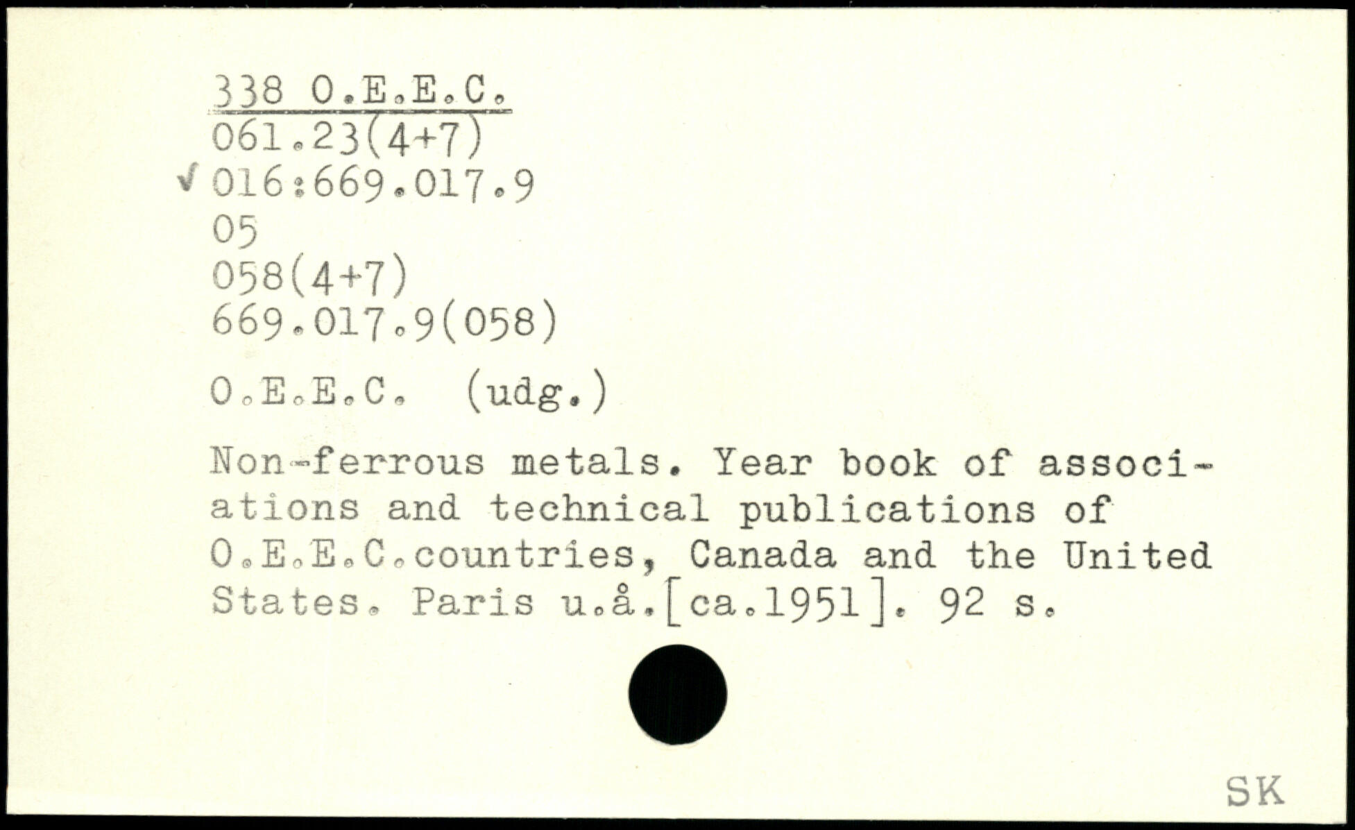 Non-ferrous metals. Year book of associations and technical publications of O.EiE.Co countries, Canada and the United States. Paris u.a,[ca,1951].