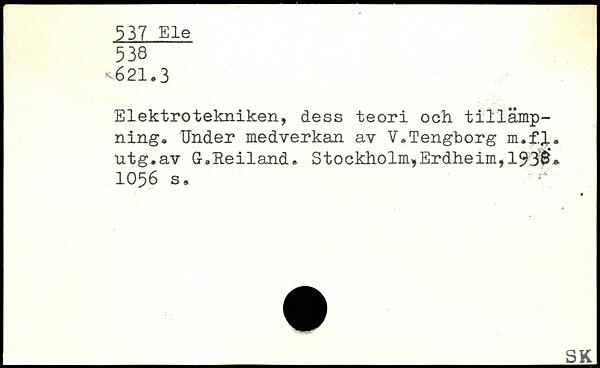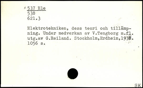 Elektrotekniken, dess teori ooh. tillämpning, Under medverkan av V.TengUorg m.fl. utg.av Q.Reiland, Stockholm,Erdheim,193$.
