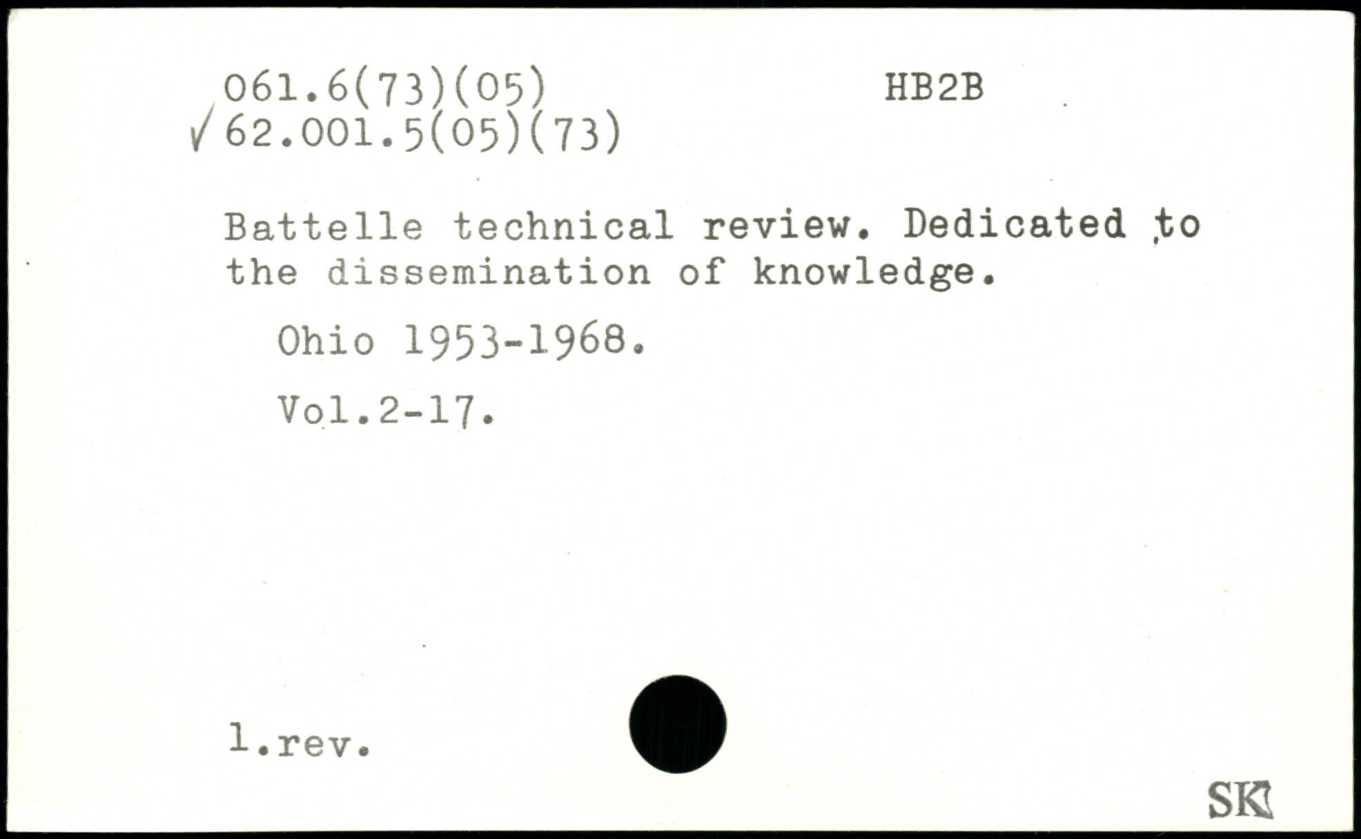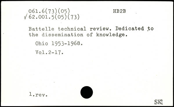 Battelle technical review. Dedicated ,to the dissemination of knowledge. Ohio 1953-1968.