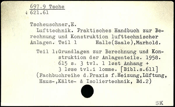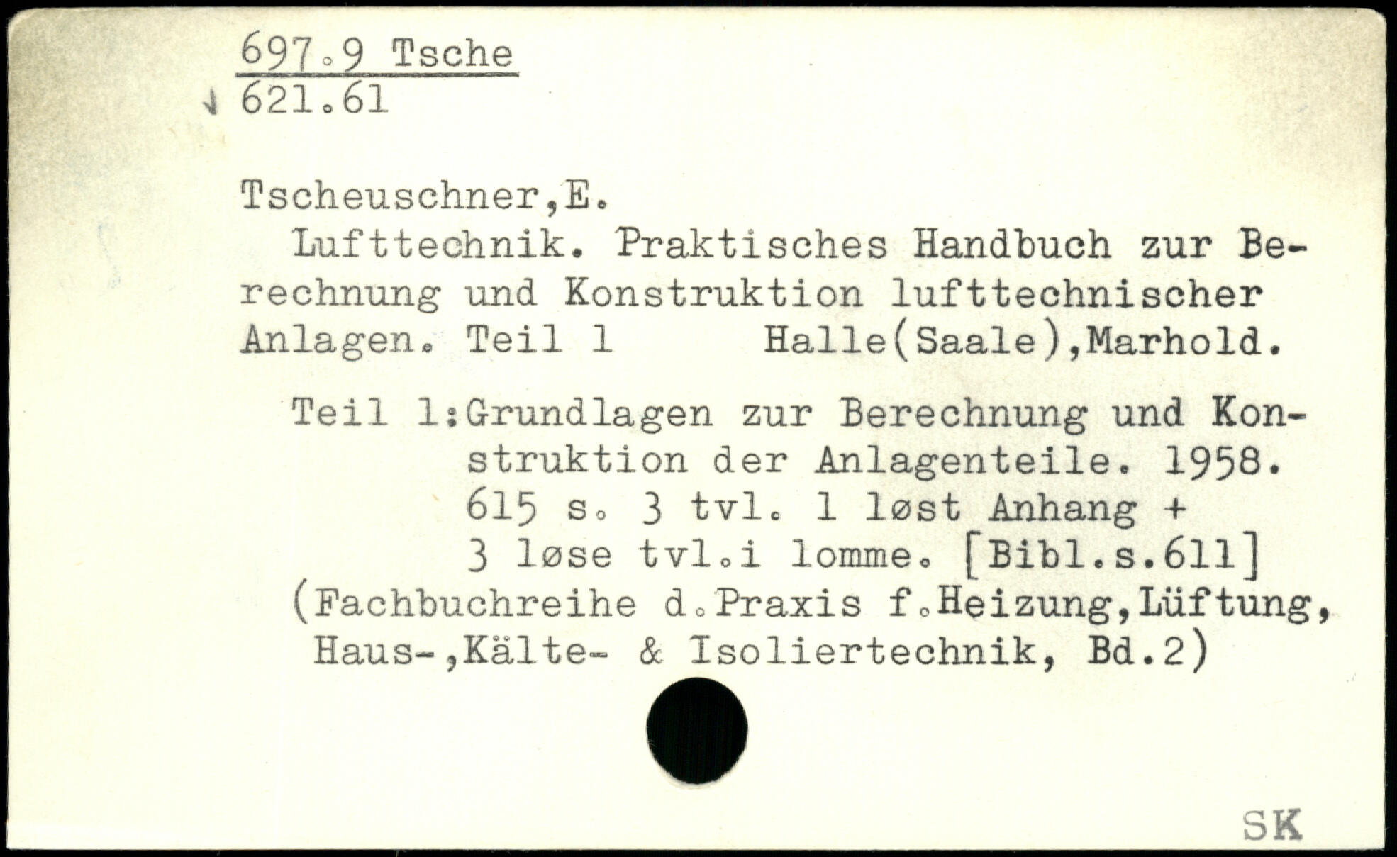 Lufttechnik. Praktisches Handbuch zur Berechnung und Konstruktion lufttechnischer Anlagen, Teil 1 Halle(Saale),Marhold. Teil 1:Grundlagen zur Berechnung und Konstruktion der Anlagenteile. 1958