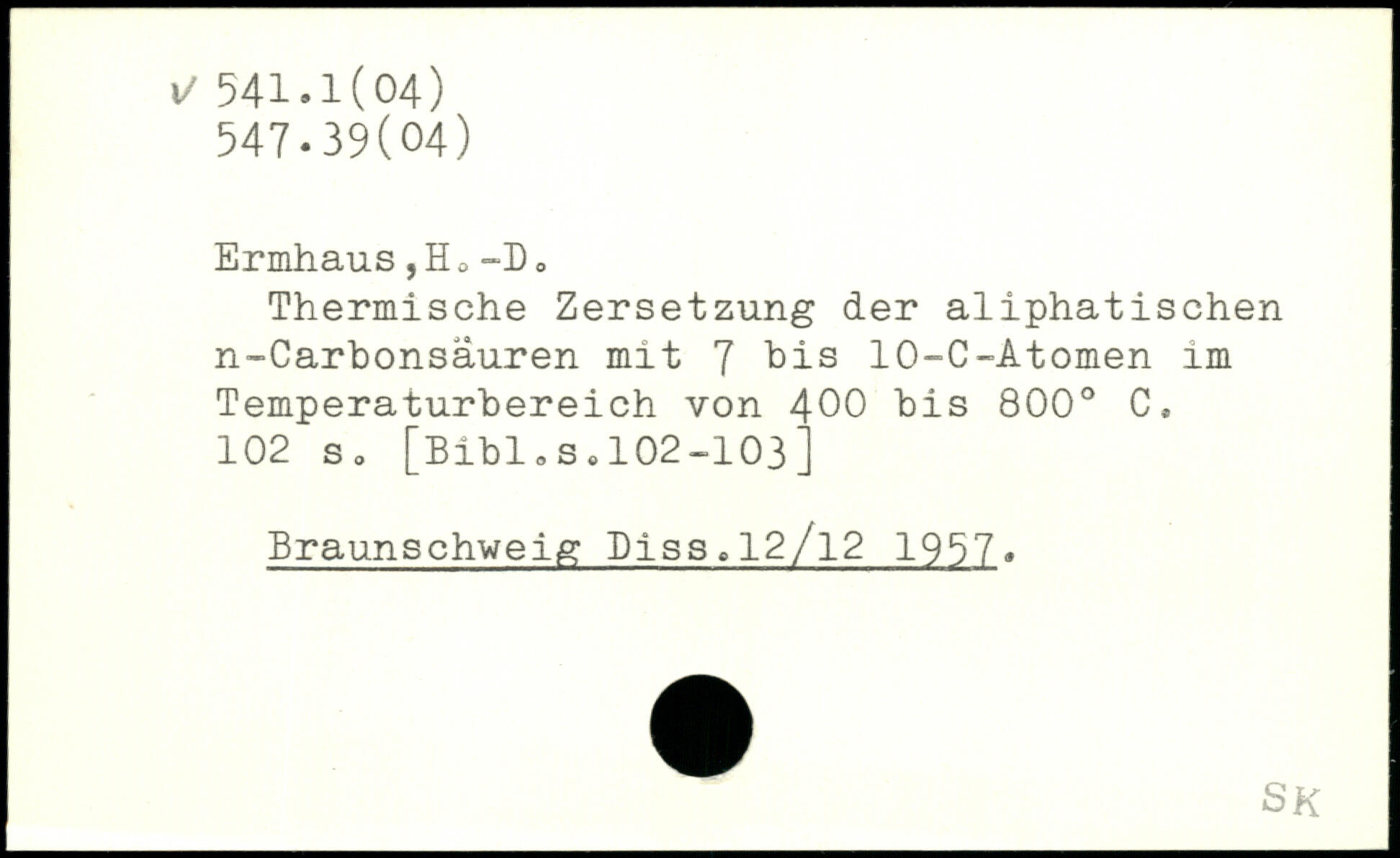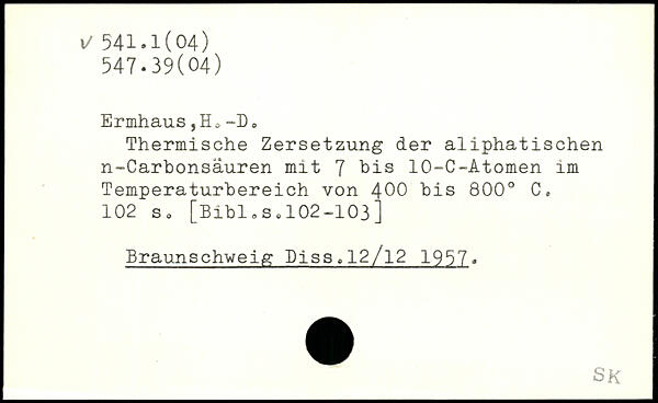 Thermische Zersetzung der aliphatischen n-Carbonsäuren mit 7 bis 10-C-Atomen im Temperaturbereich von 400 bis 800. C