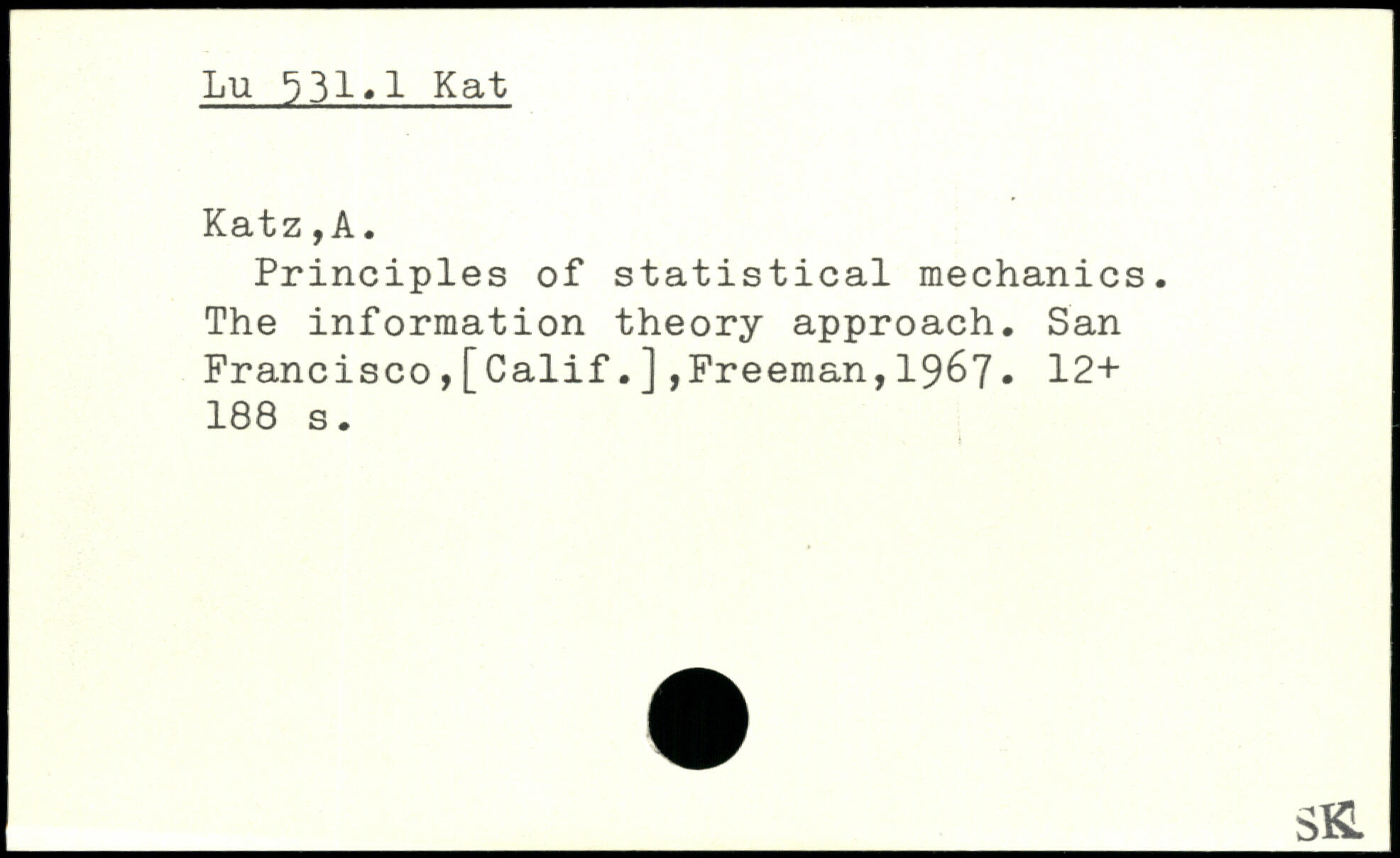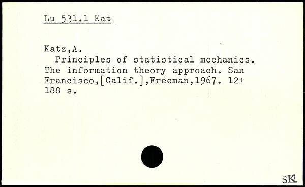 Principles of statistical mechanics. The information theory approach. San Francisco,[Calif.],Freeman,1967. 12+