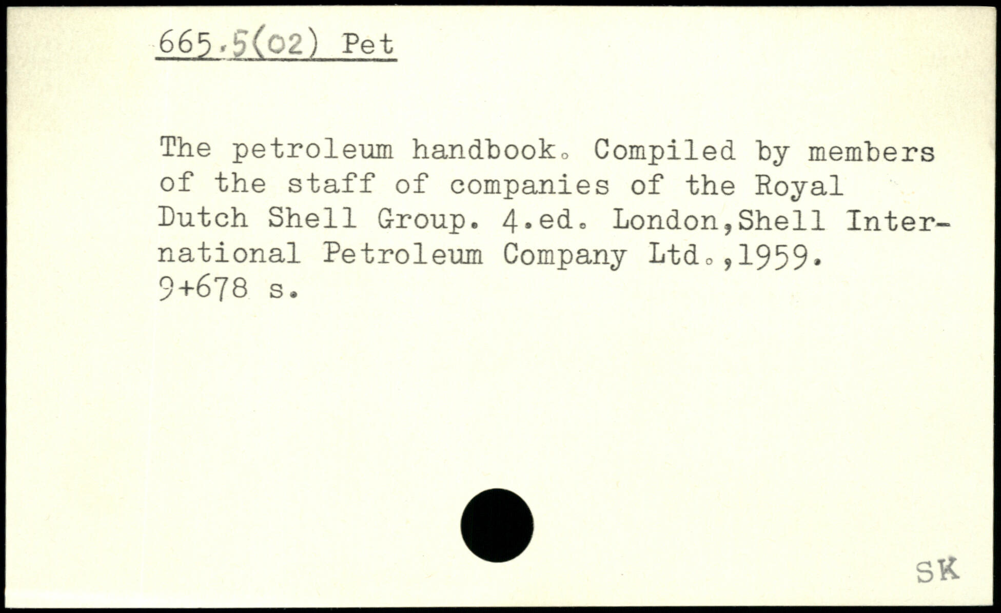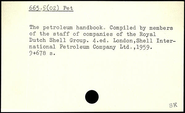 The petroleum handbooko Compiled by members of the staff of companies of the Royal Dutch Shell Group. 4-ed. London,Shell International Petroleum Company Ltd0,1959.