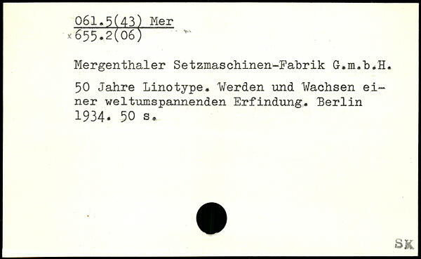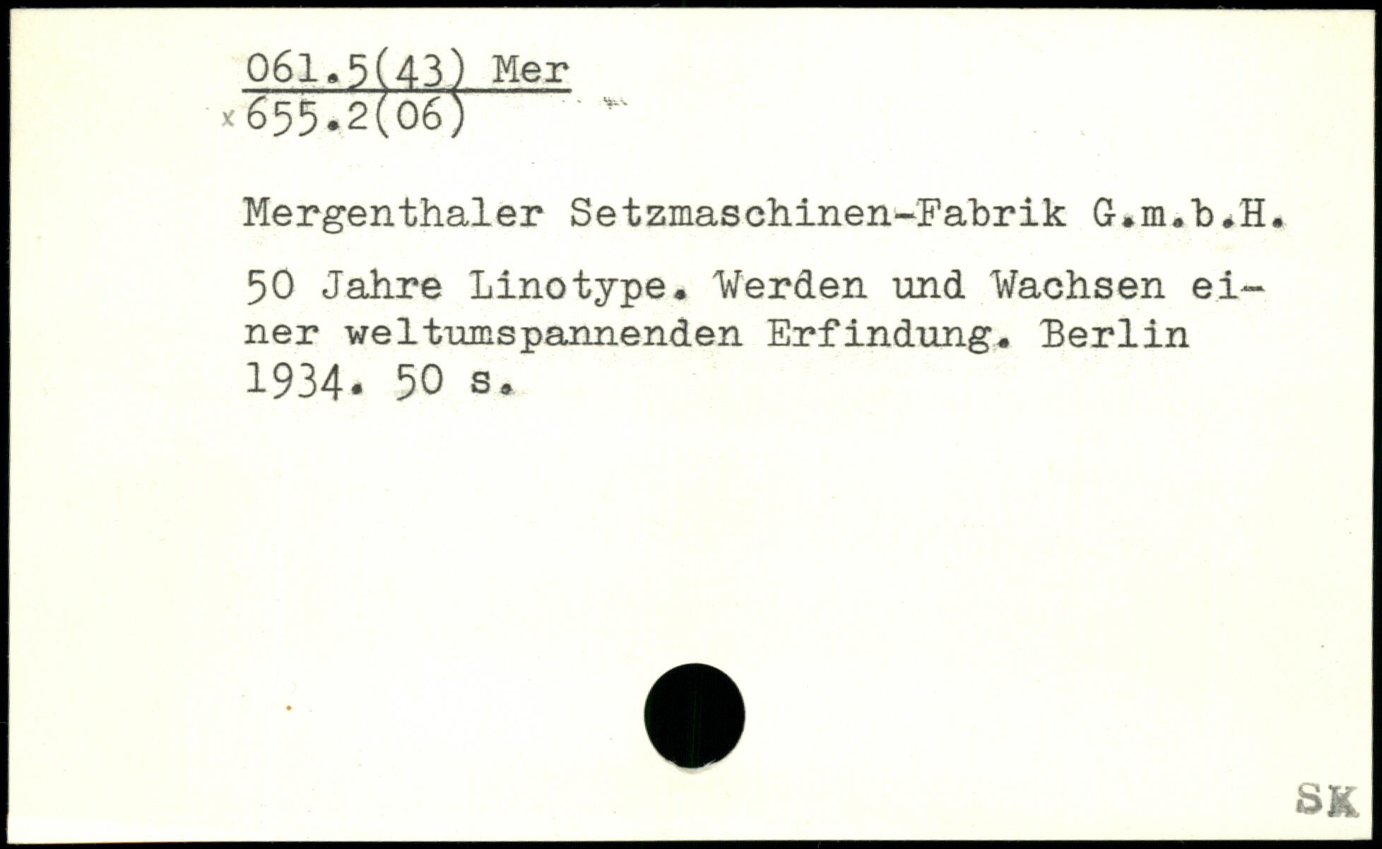 Mergenthaler Setzmaschinen-Fabrik G.m.b.H. 50 Jahre Linotype. Verden und Wachsen einer weltumspannenden Erfindung.