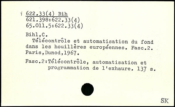 Telecontrole et automatisation du fond dans les houillères européennes. Fasc.2.