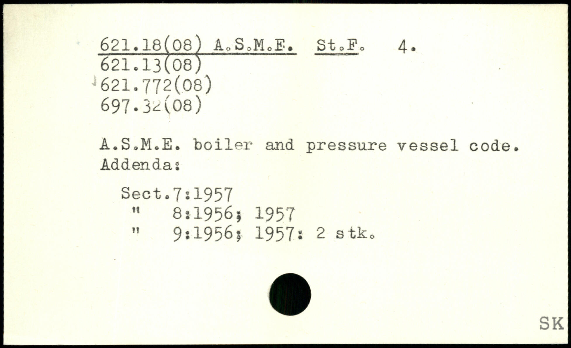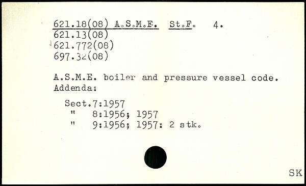 A.S.M.E. boiler and pressure vessel code. Addendas Sect.7:1957 , " 8:1956s 1957 " 9.1956; 1957i