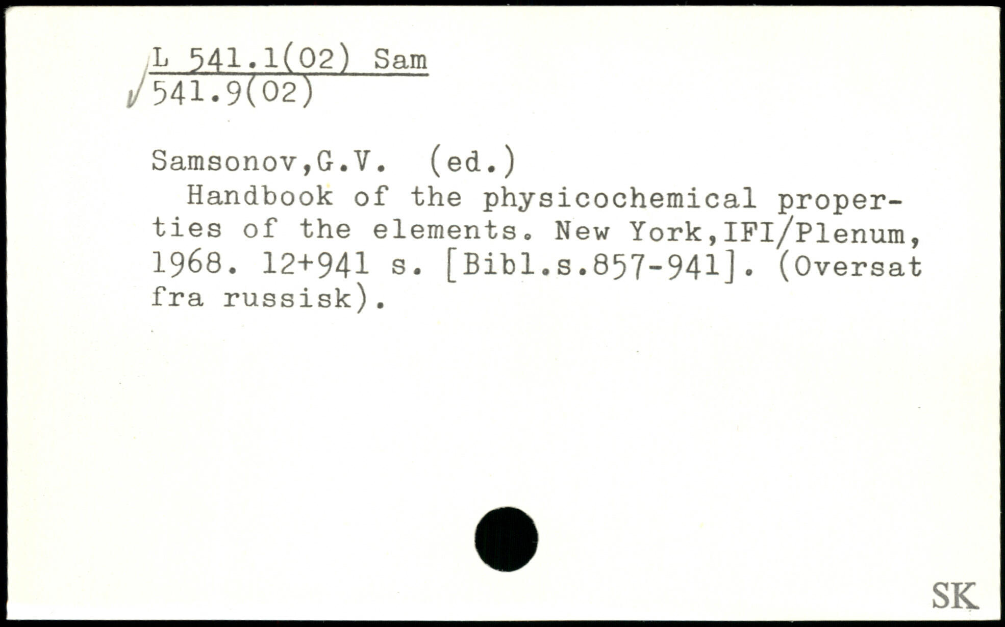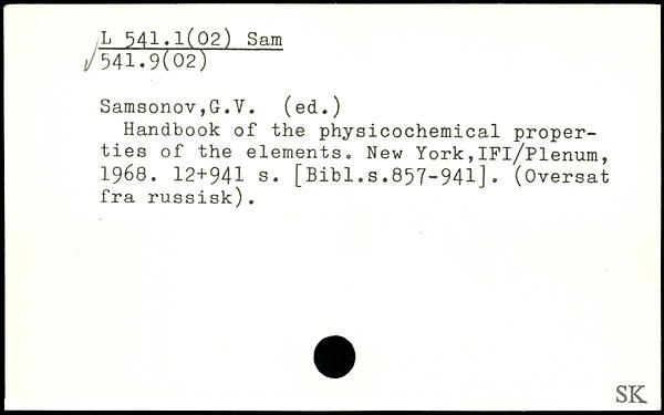 Handbook of the physicochemical properties of the elements.