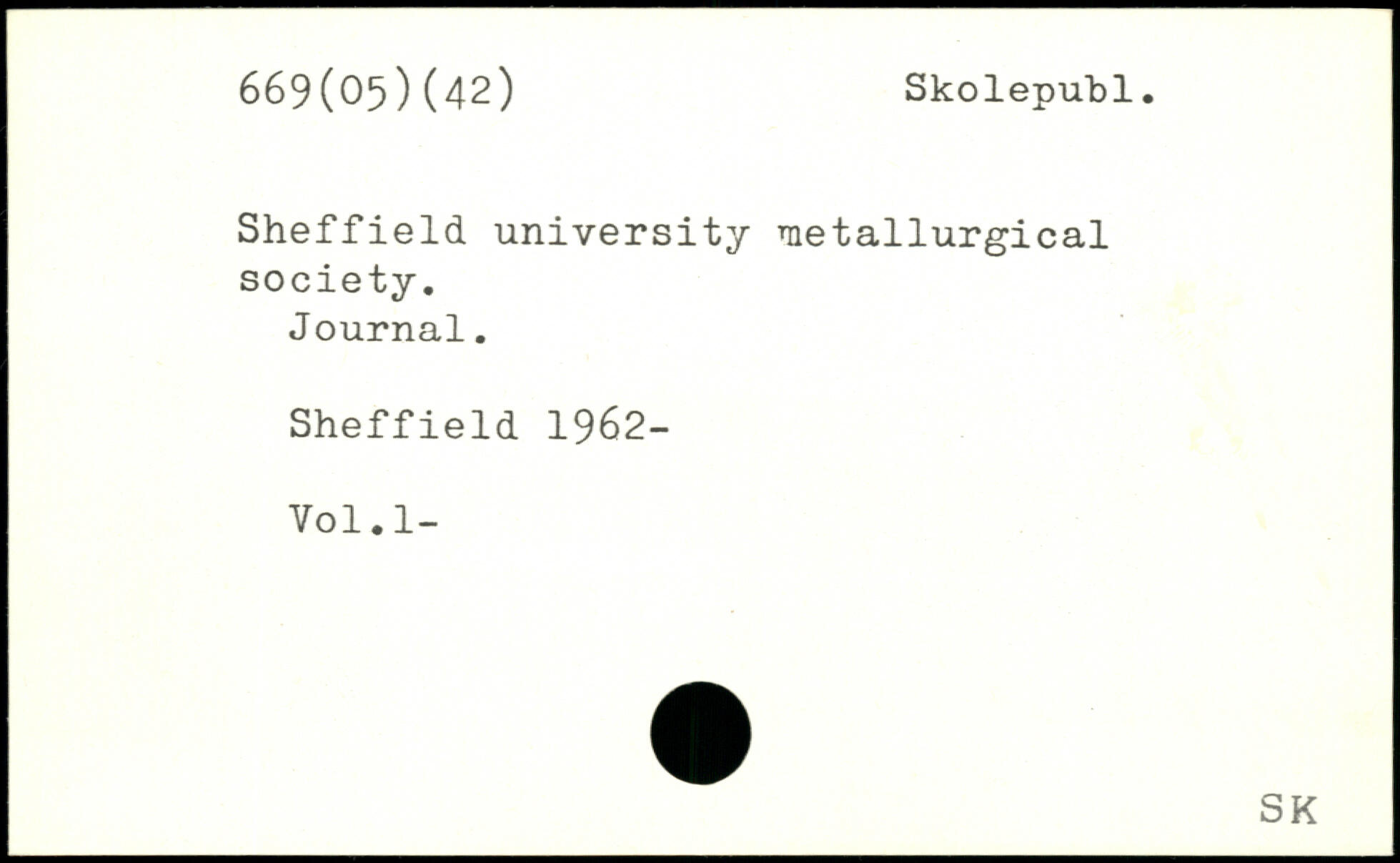 Sheffield university metallurgical society. Journal. Sheffield 1962- Vol.l-