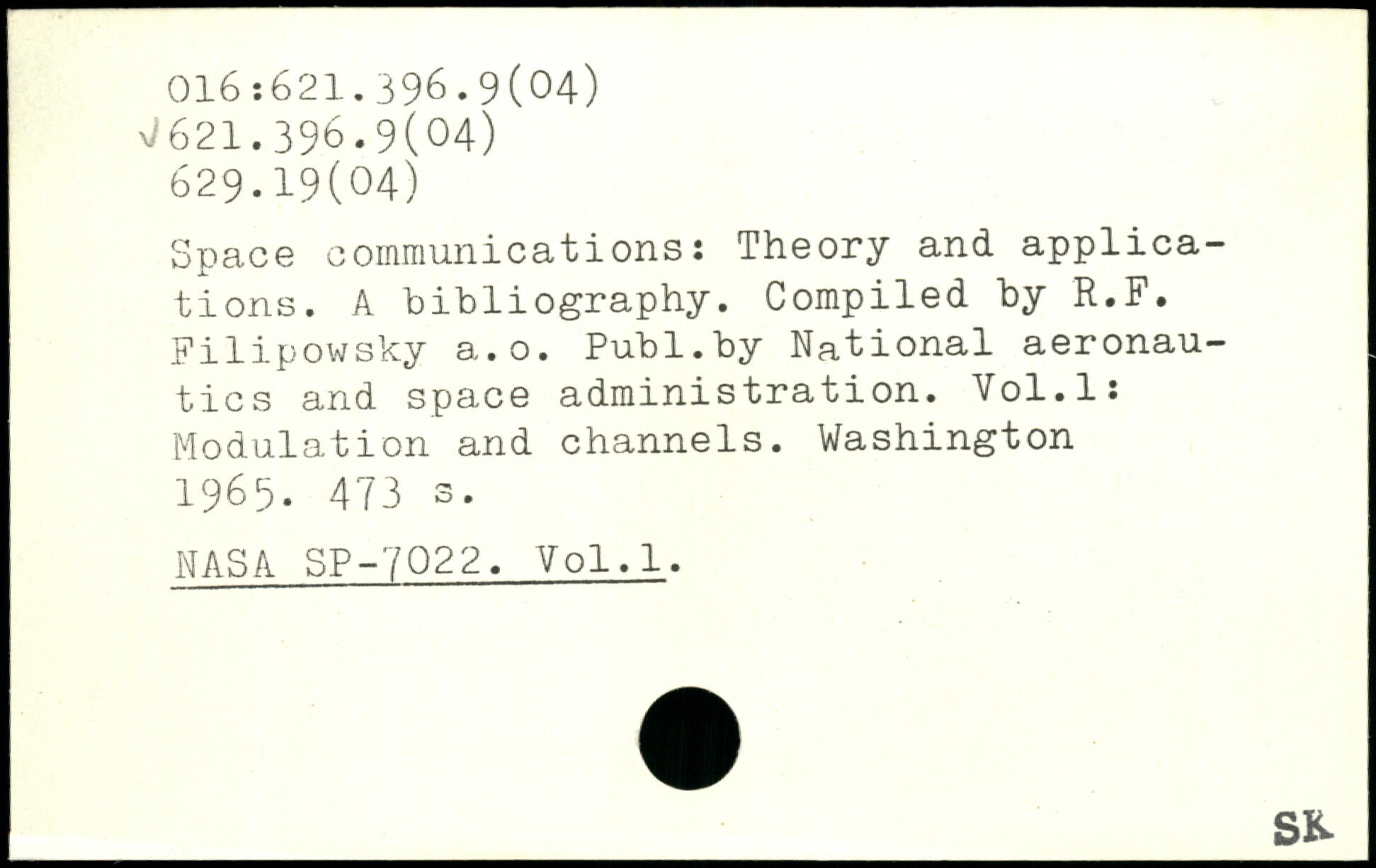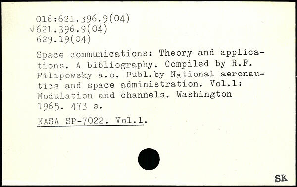 Space communications: Theory and applications. A bibliography. Compiled by R.F. Filipowsky a.o.
