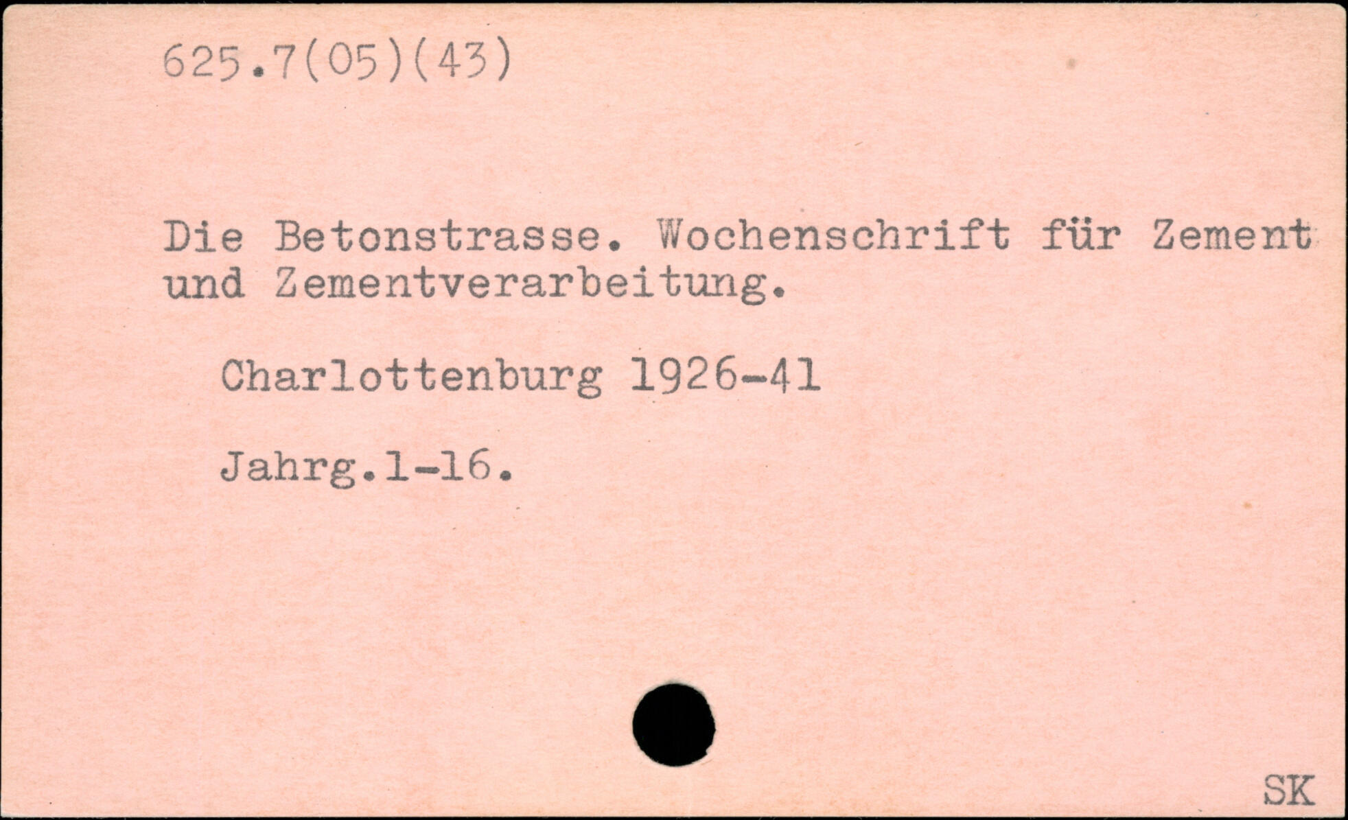 Die Betonstrasse. Wochenschrift für Zement und Zementverarbeitung. Charlottenburg 1926-41 Jahrg.1-16.