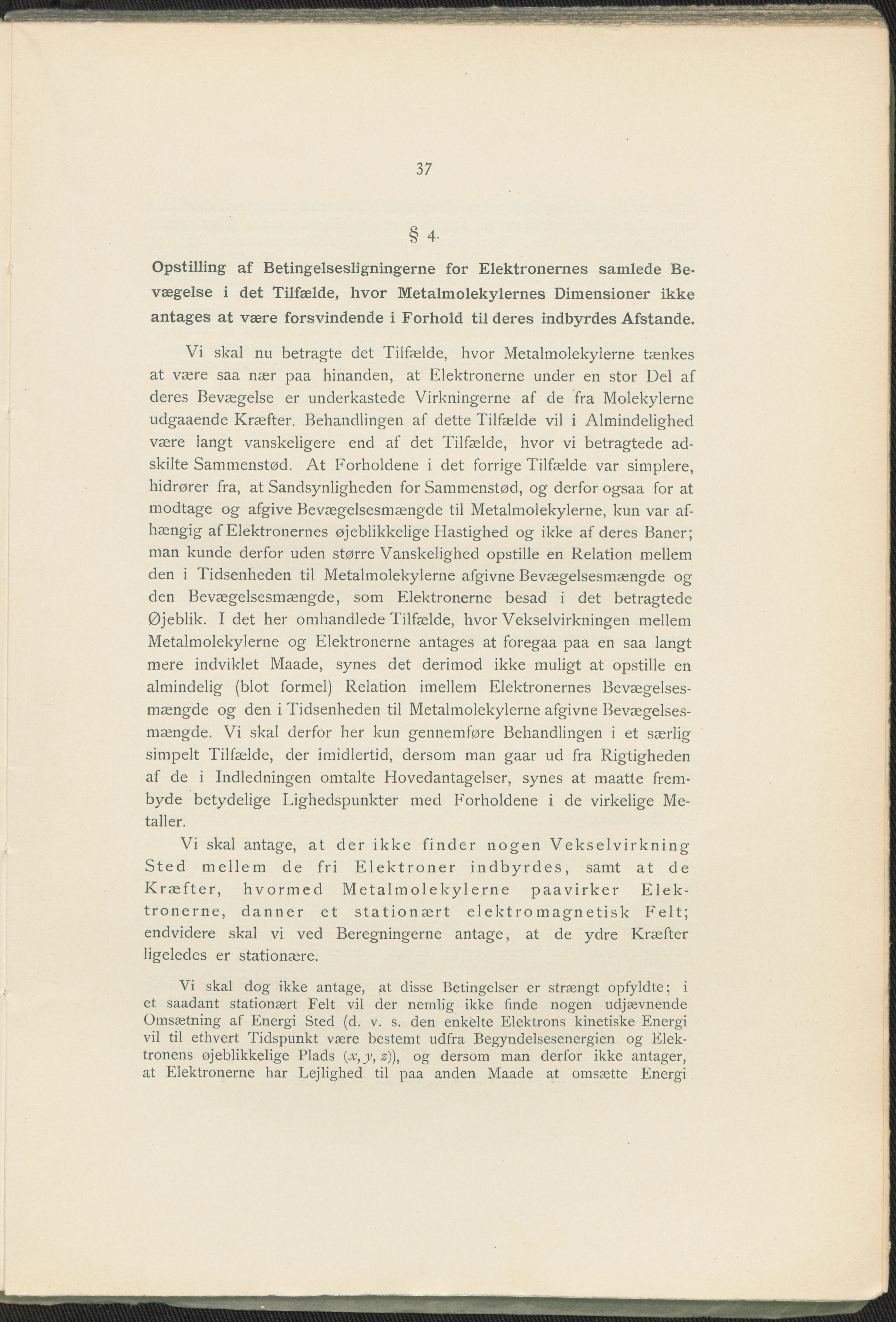 Metalmolekylerne og Elektronerne antages at foregaa paa en saa langt