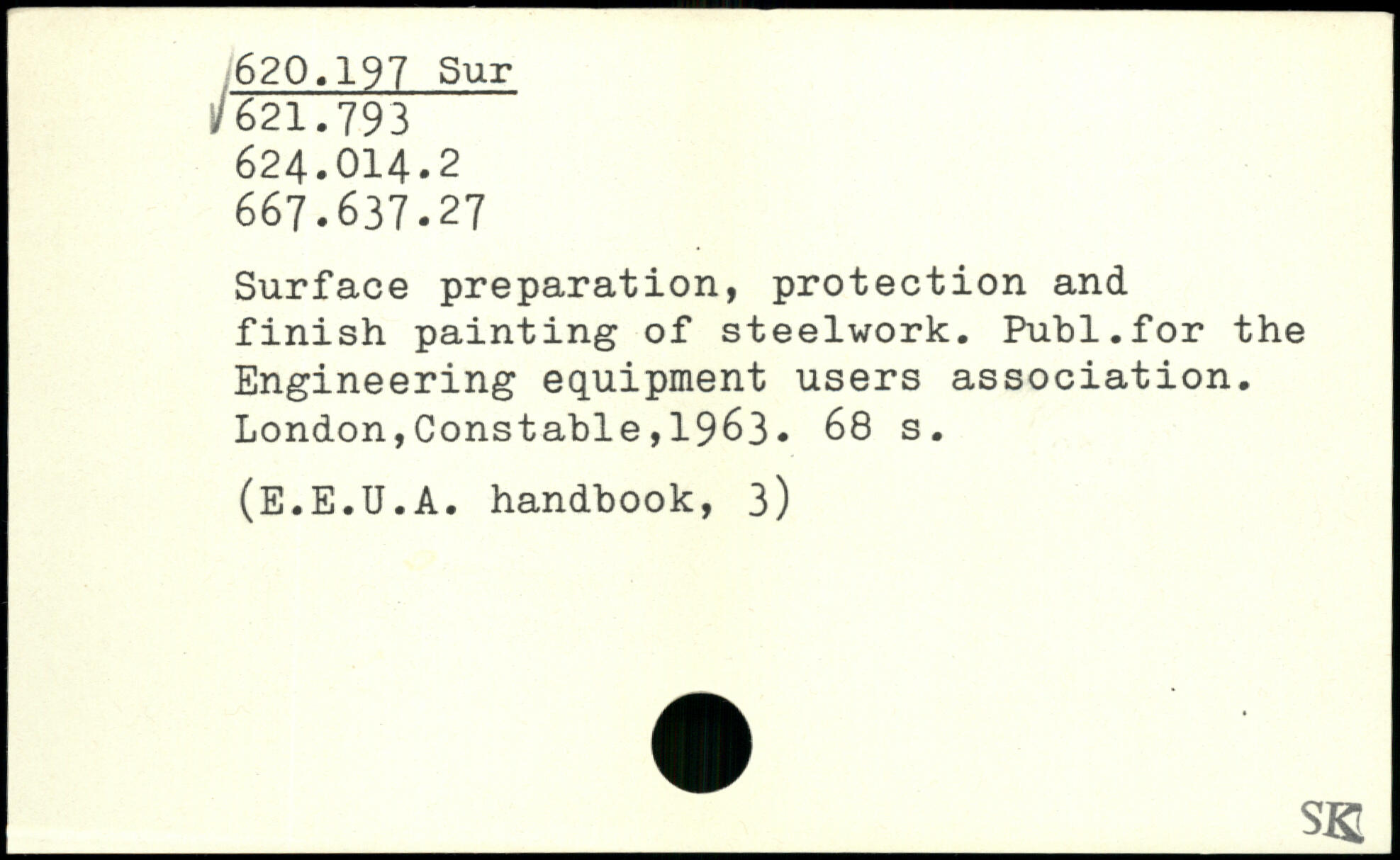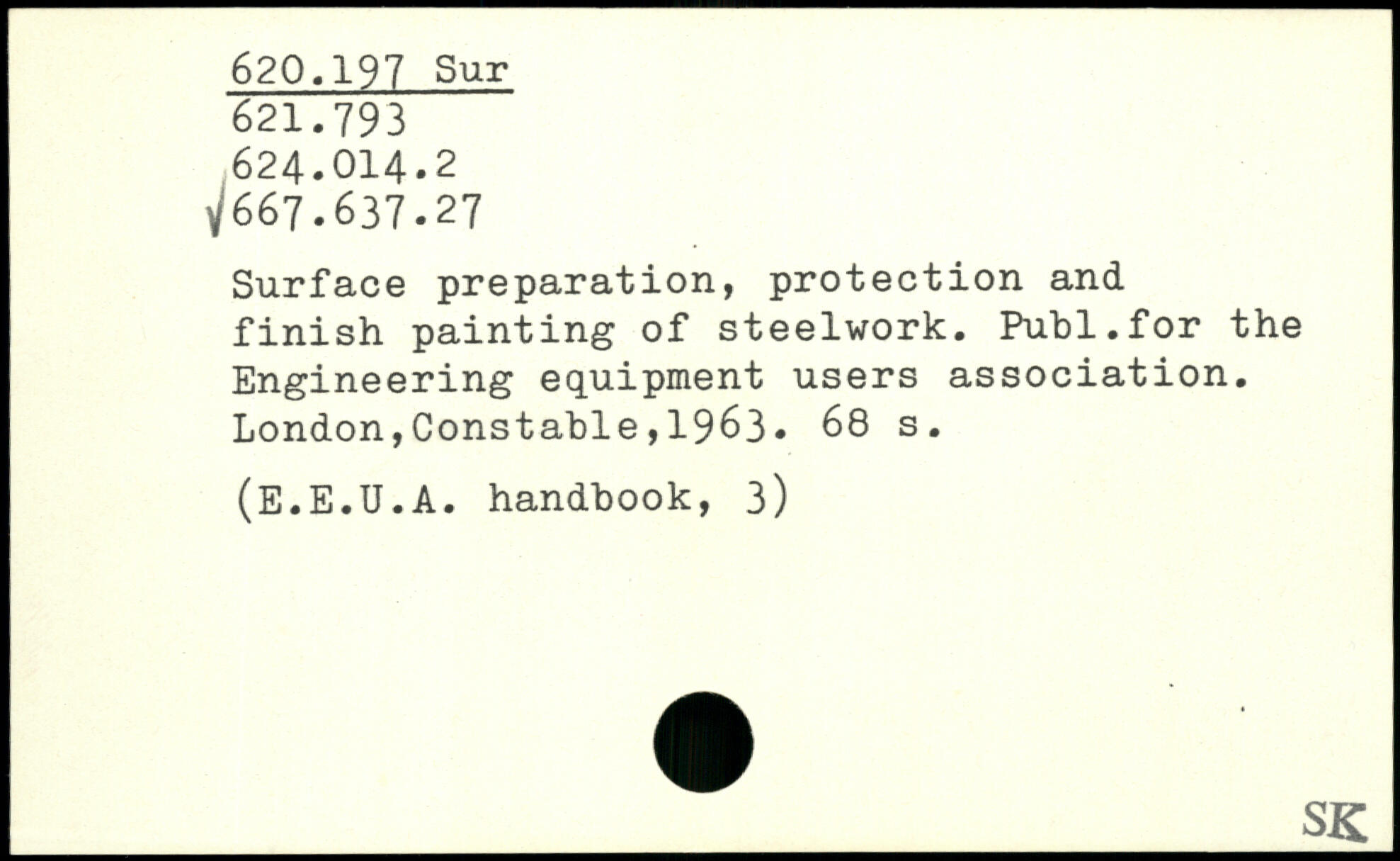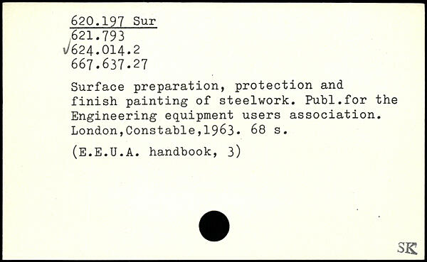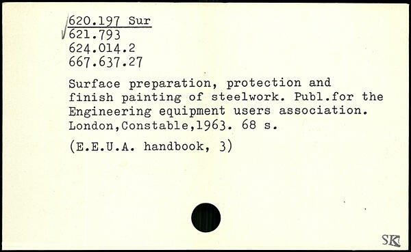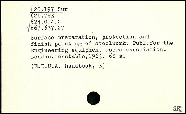 Surface preparation, protection and finish painting of steelwork. Publ.for the Engineering equipment users association.