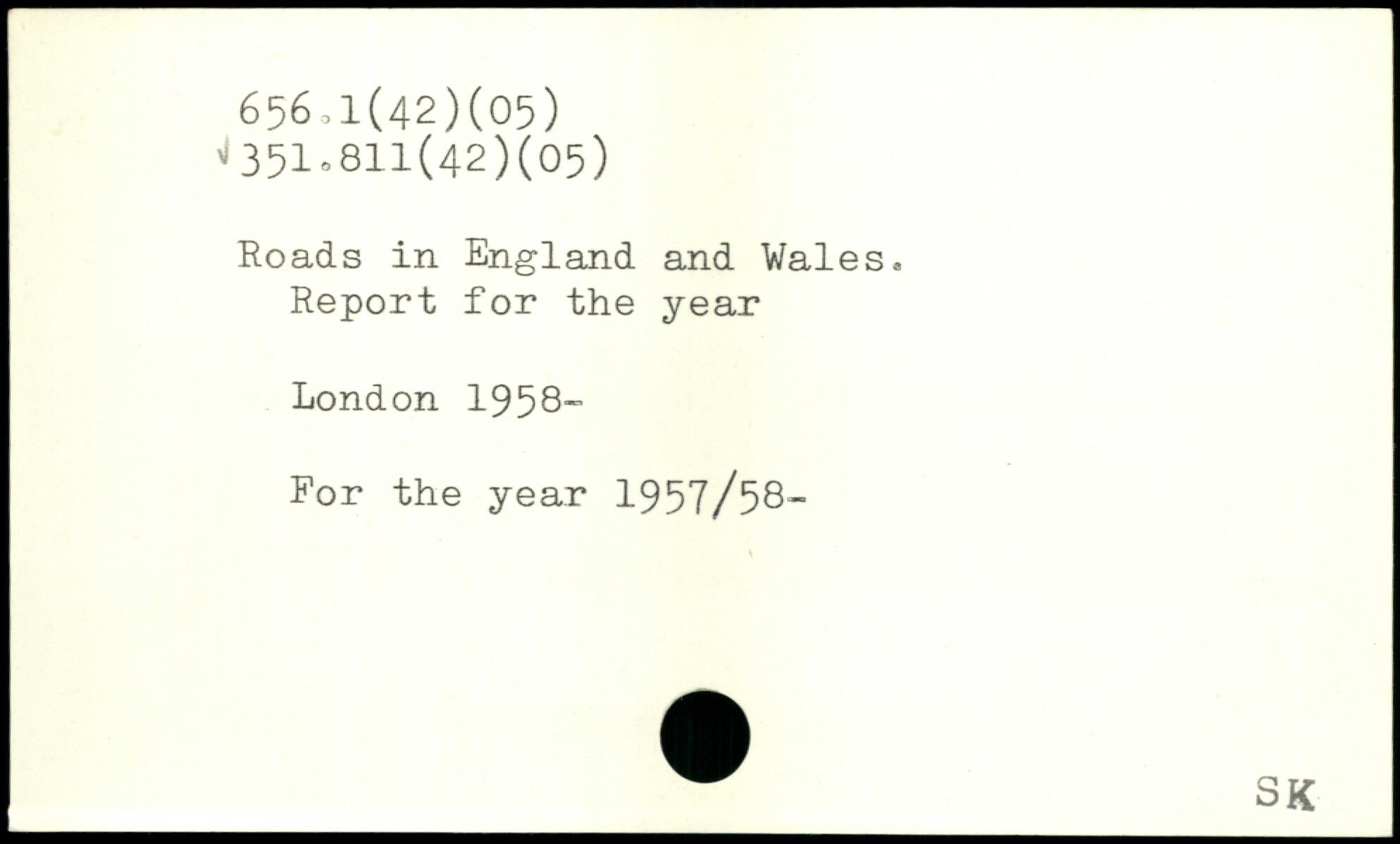 Roads in England and Vales. Report for the year