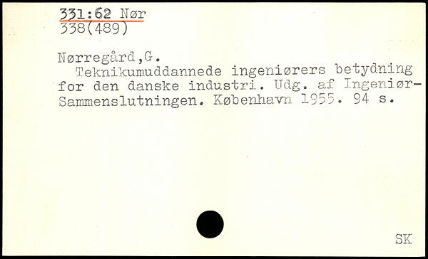 Teknikumuddannede ingeniørers betydning for den danske industri. Udg. af Ingeniør-Sammenslutningen.