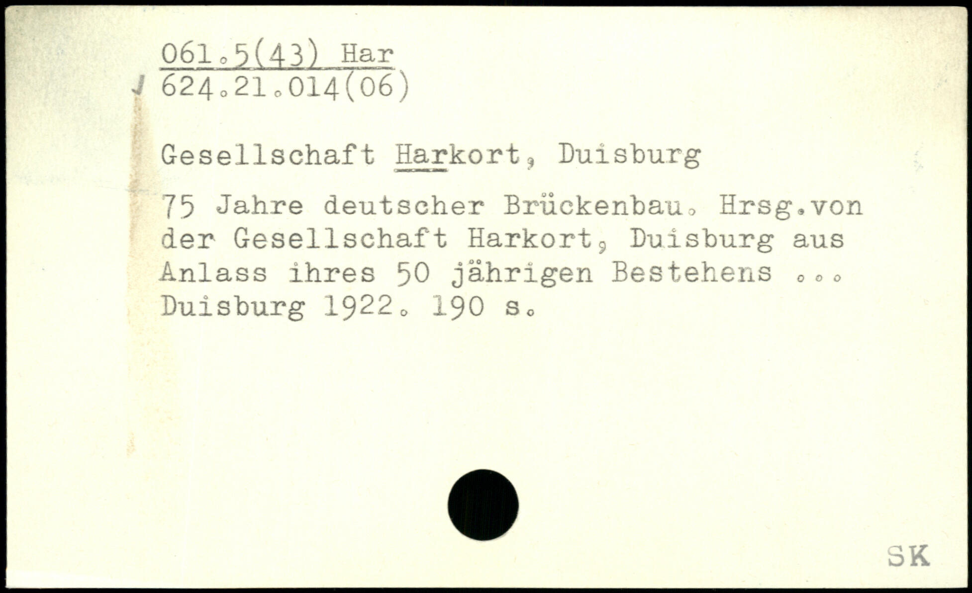 Gesellschaft Harkort, Duisburg 75 Jahre deutscher Brückenbau, Hrsg,von der Gesellschaft Harkort9 Duisburg aus Anlass ihres 50 jährigen Bestehens 00, Duisburg 19220