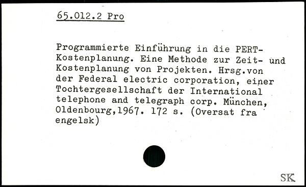 Programmierte Einführung in die PERT-Kostenplanung. Eine Methode zur Zeit- und Kostenplanung von Projekten. Hrsg.von der Federal electric corporation, einer Tochtergesellschaft der International telephone and telegraph corp.