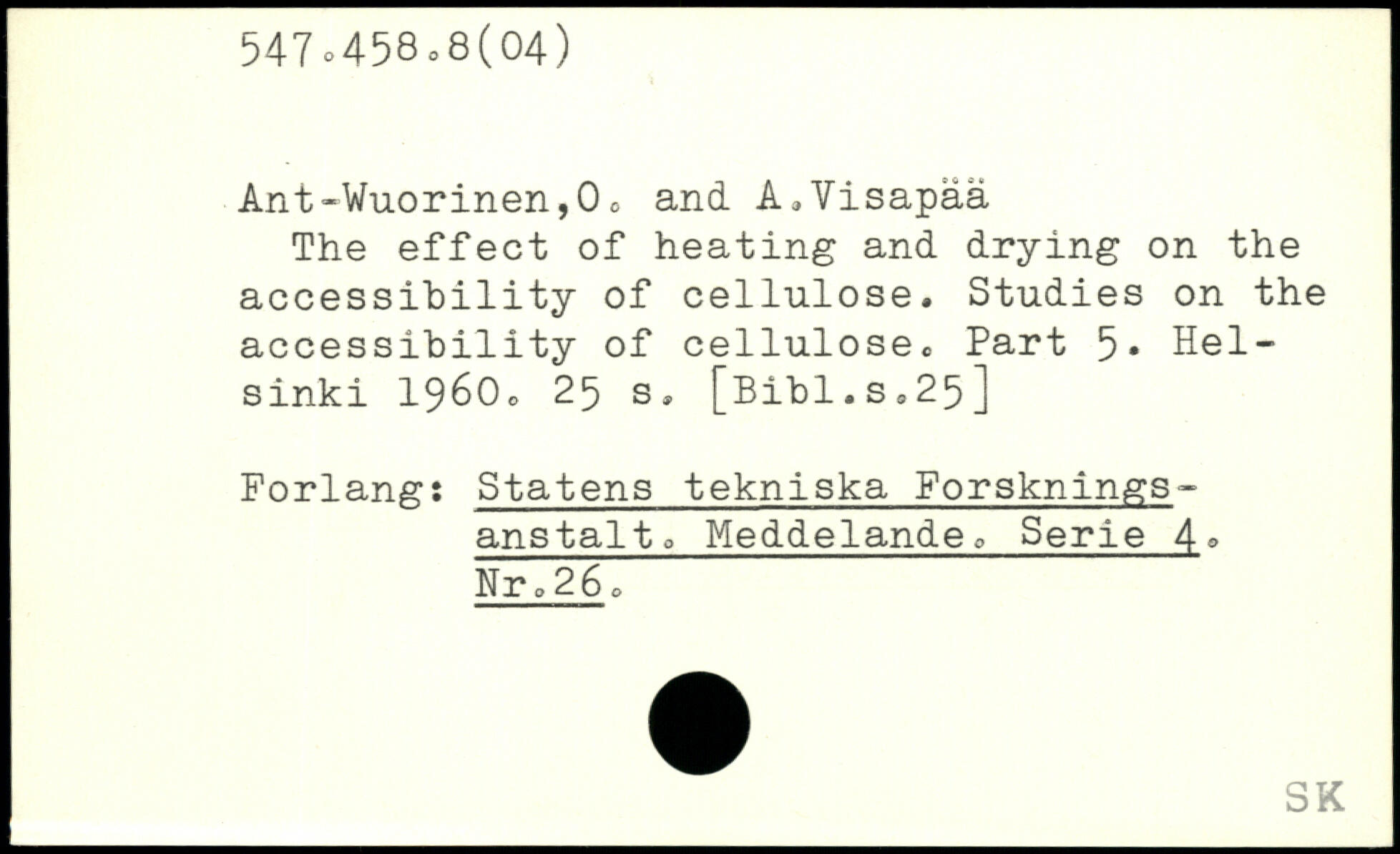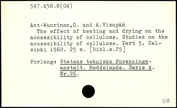 Ant-Vuorinen,0c and A.Visapaa The effect of heating and drying on the accessibility of cellulose. Studies on the accessibility of cellulose. Part 5